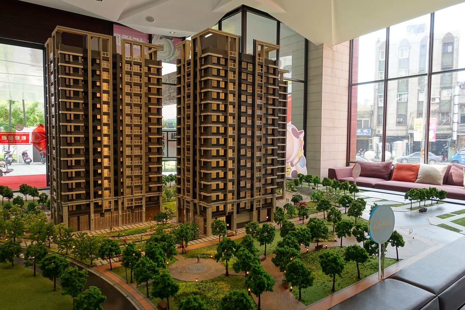 「超級城市Super讚」擁有千坪的綠意空間,全區種植逾數百顆樟樹、欒樹,綠覆率50%,住在這裡就像住在公園裡,每天從自己家往窗外看,滿窗的綠意雖然只是看幾分鐘都覺得舒服極了!我一向習慣住高樓層,但看到這樣的低樓層景觀也動搖了。