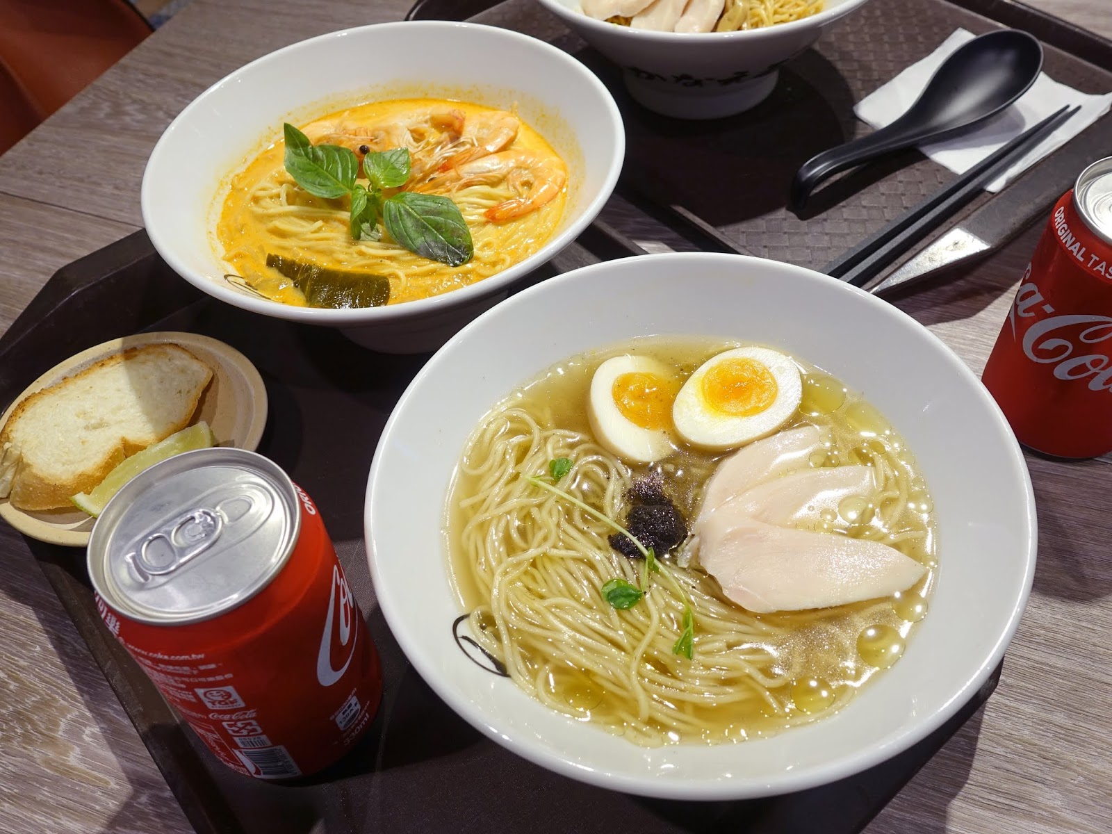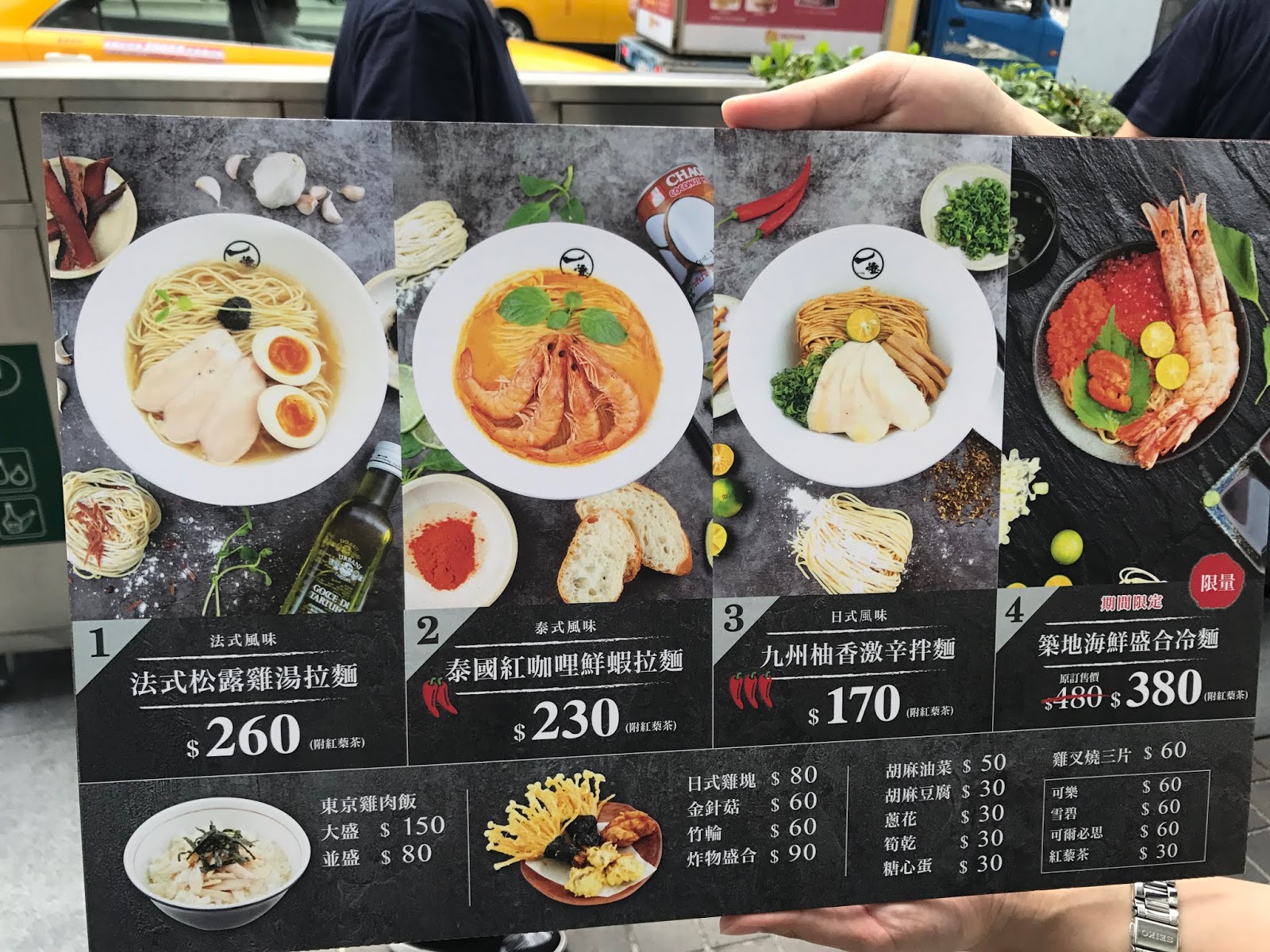在三款限定版拉麵中,我最推薦的是滋味濃郁、帶著微辣的「泰國紅咖哩鮮蝦拉麵」,如果不敢吃辣的話建議嘗試「法式松露雞湯拉麵」,松露香氣與雞湯清爽的湯頭相當令人喜愛,另一款風味獨特的「九州柚香激辛拌麵」,香氣好但辛辣度高,我平常只吃小辣,就無法承受這重辣口味。
