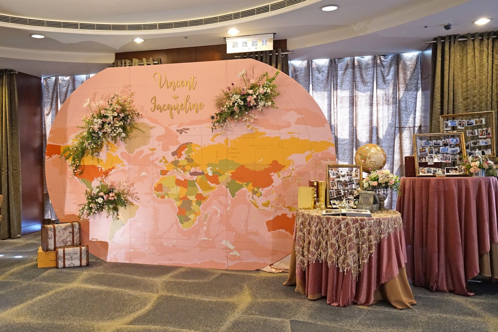 婚禮背板還放置了一些行李箱等旅遊元素,讓主題更加完整的呈現。