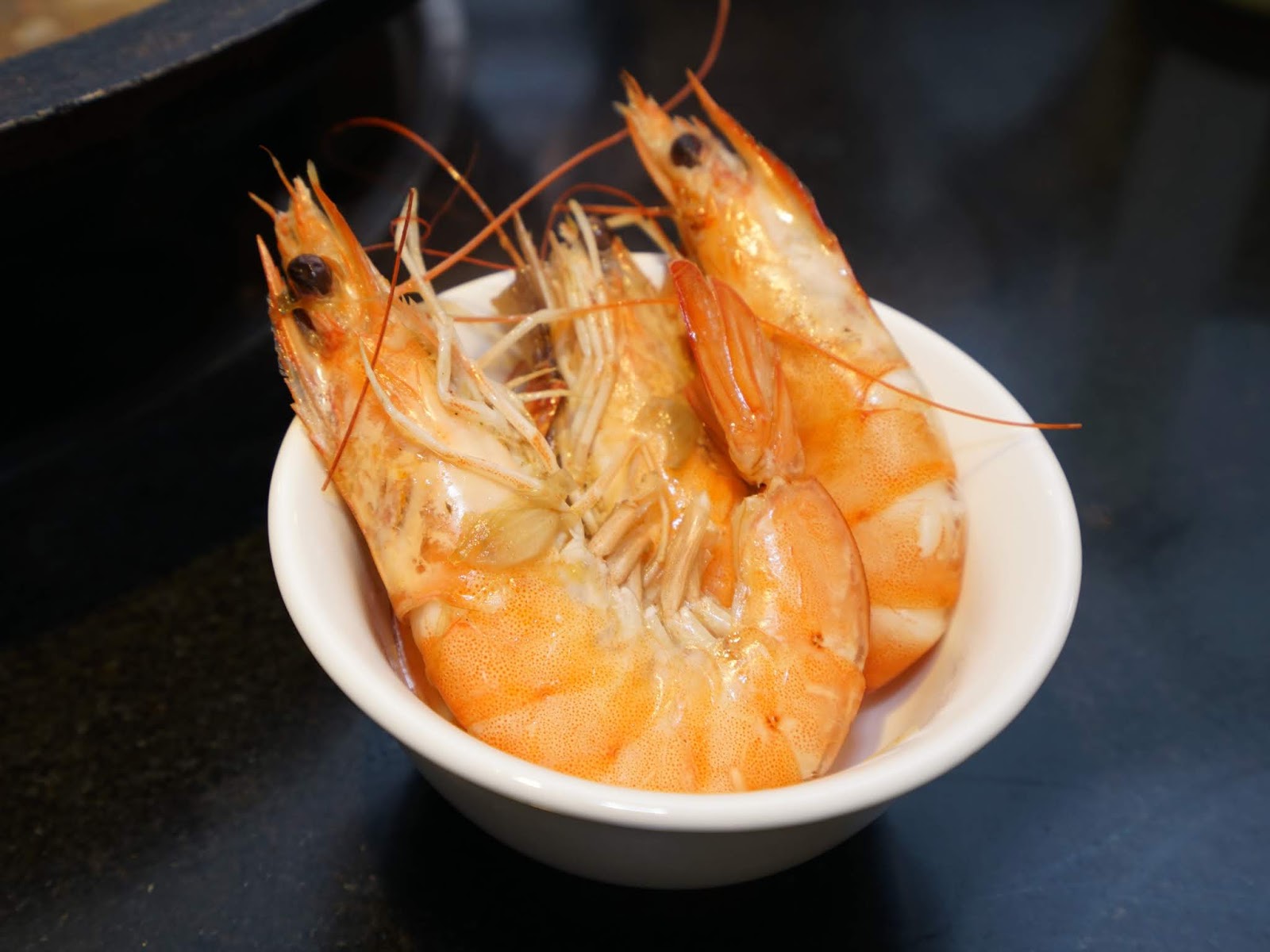 肥碩飽滿的鮮蝦,煮到蝦子變紅就趕快夾起來吃,這時的肉質最棒,彈嫩多汁~