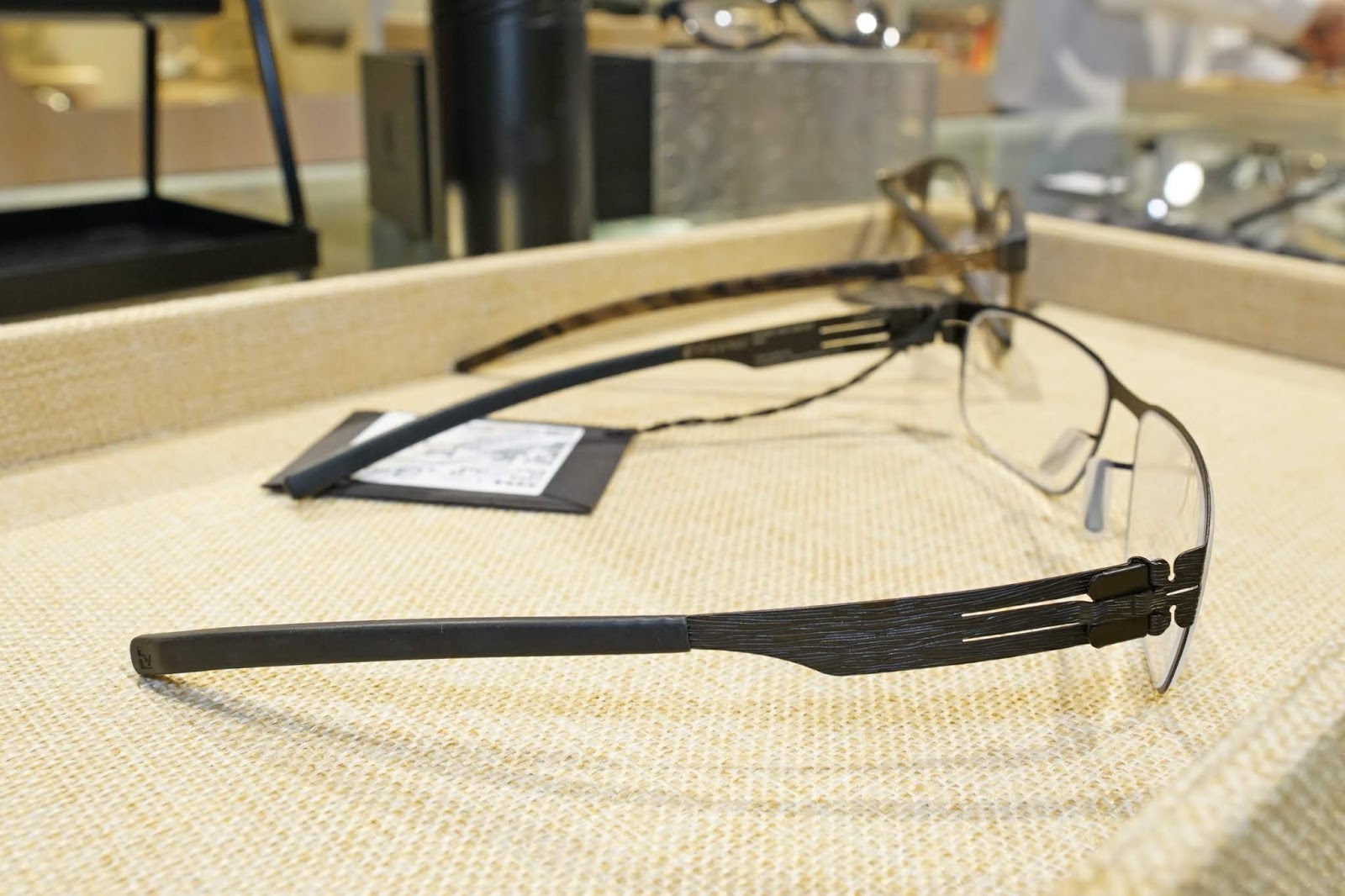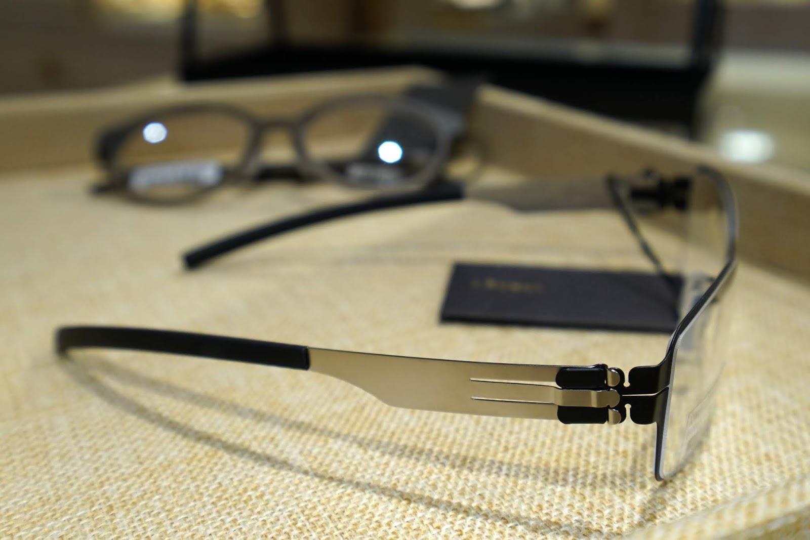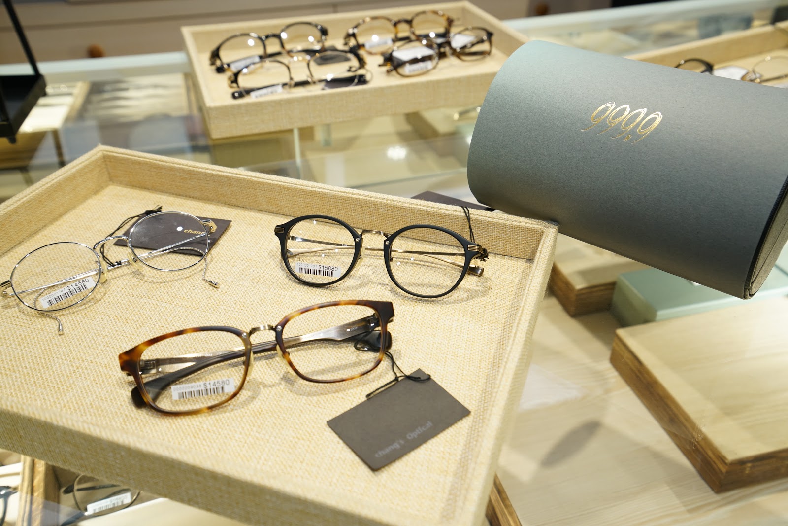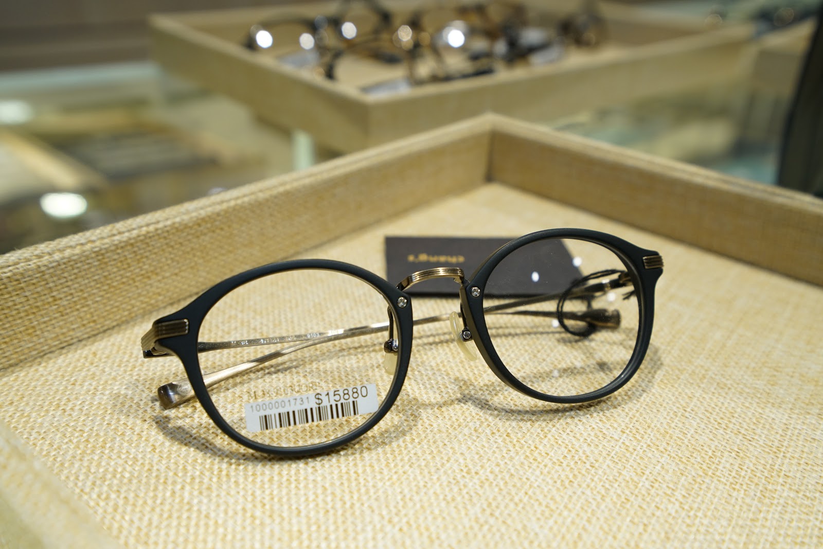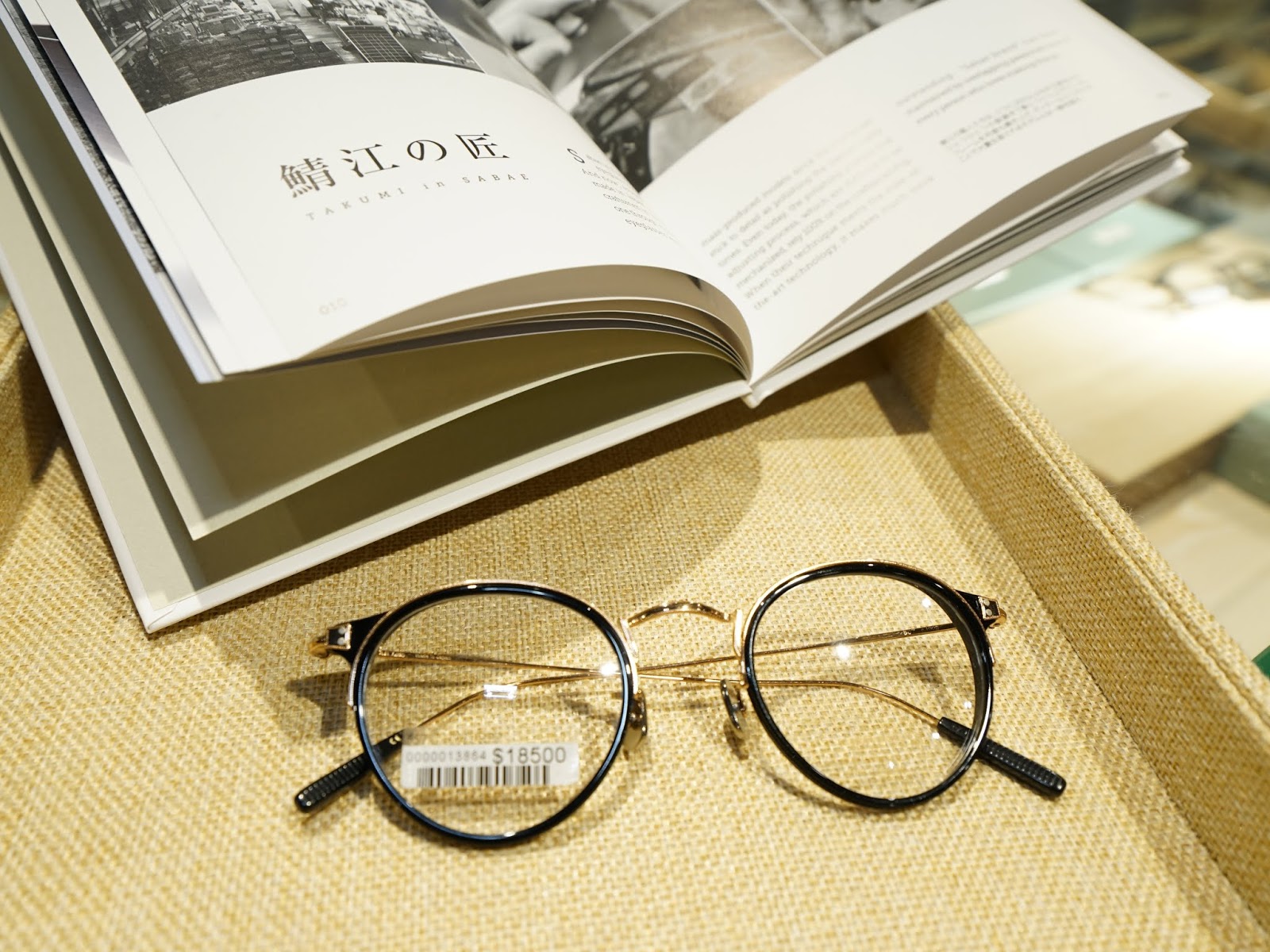 測量好度數,就可以開始挑選鏡框,等鏡框挑選好後再用定位儀來量測眼球的位置。由於我偏好手工鏡框,我們就直接到地下樓層去挑選,特別來看傳說中的日本神級鏡框999.9。