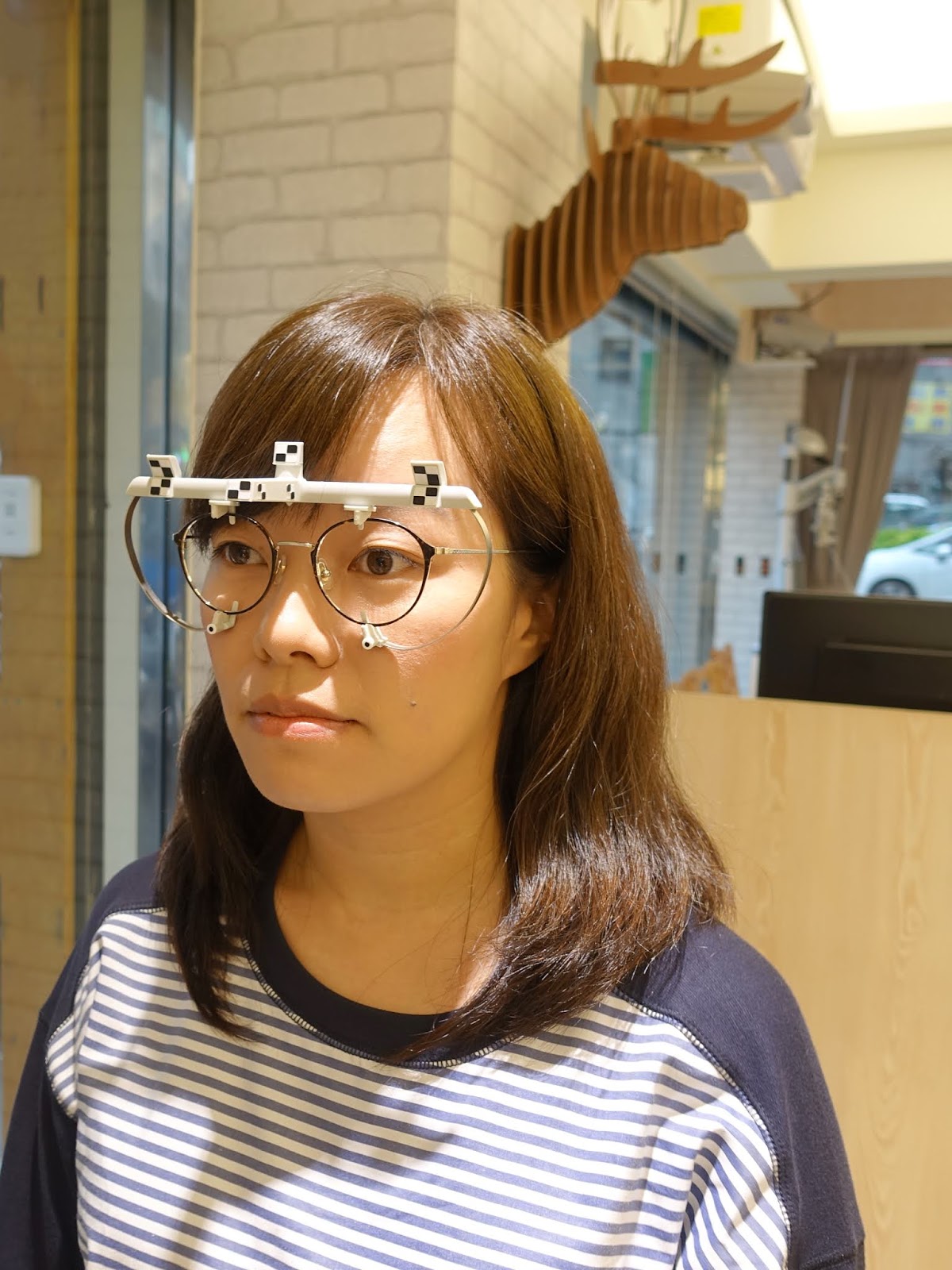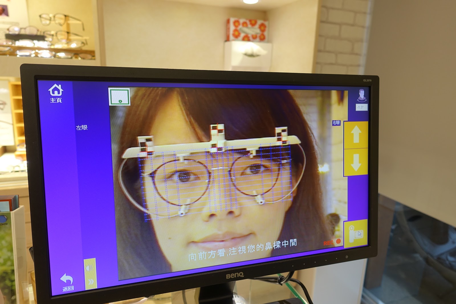 最後再戴著我選到的鏡框去用定位儀的檢測,精準的根據你戴眼鏡的習慣,高低位置去定出鏡片的中心點,在製作鏡片時才能與瞳孔對準,進而做出最適合你、戴起來最舒適的眼鏡。