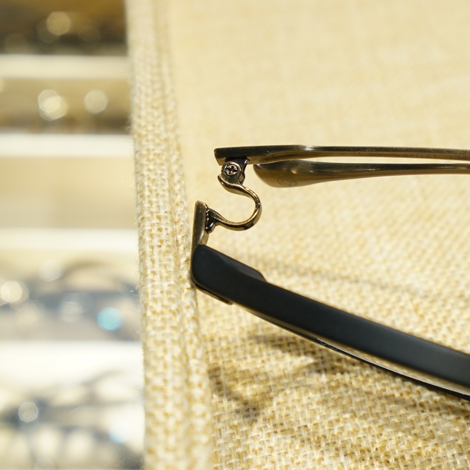 德國薄鋼鏡框擁有無螺絲三叉卡榫的結構,呈現出俐落的形象!而且鏡腳的表面質感處理得很細膩。