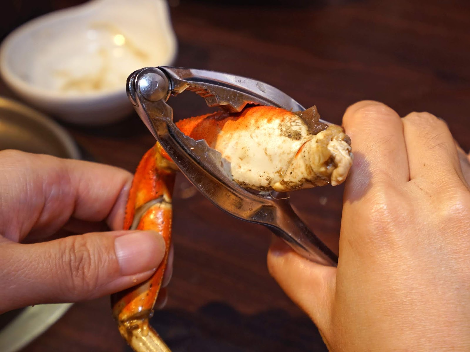 螃蟹肚子裡也是滿滿的肉,餐廳有提供專門吃螃蟹的工具,可以把蟹肉煮熟了,仔細的挖出來享用!