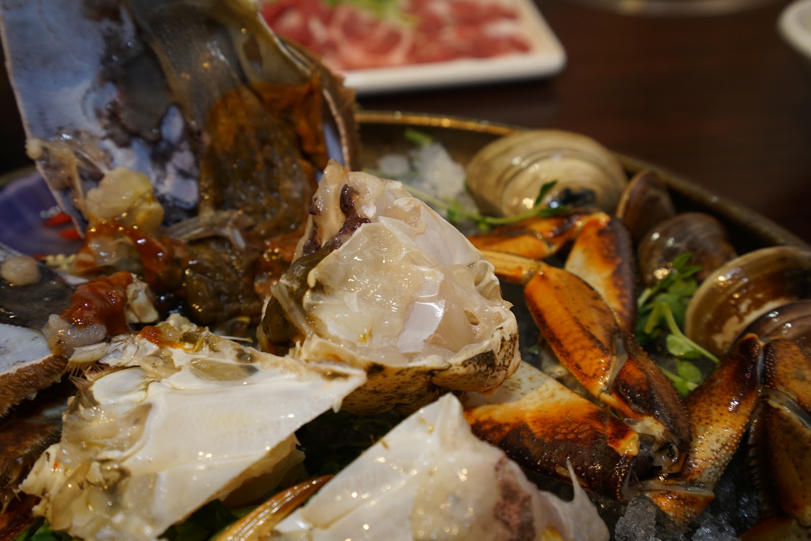 天鍋宴在天母十分有名,每次氣溫一降,我就很想要衝去吃吃看,這次邀了大家搭捷運到芝山站一起吃黃金蟹,秋天的螃蟹最是肥美,天鍋宴的食材選得很高檔,對於新鮮度與肉質的要求都非常高,讓我們大啖海鮮、牛肉,吃得非常滿足!