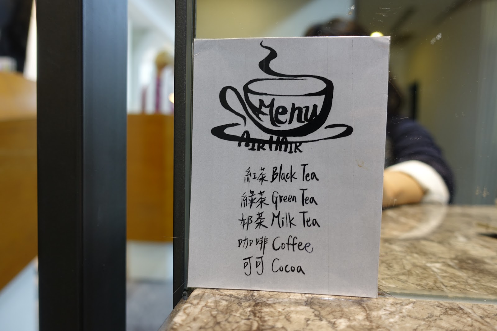 入座後,可以點自己想喝的飲料,我這次點了熱紅茶,是我喜歡的無糖口味,喝起來暖暖的,另外還有綠茶、奶茶、咖啡或可可,選擇蠻多的。