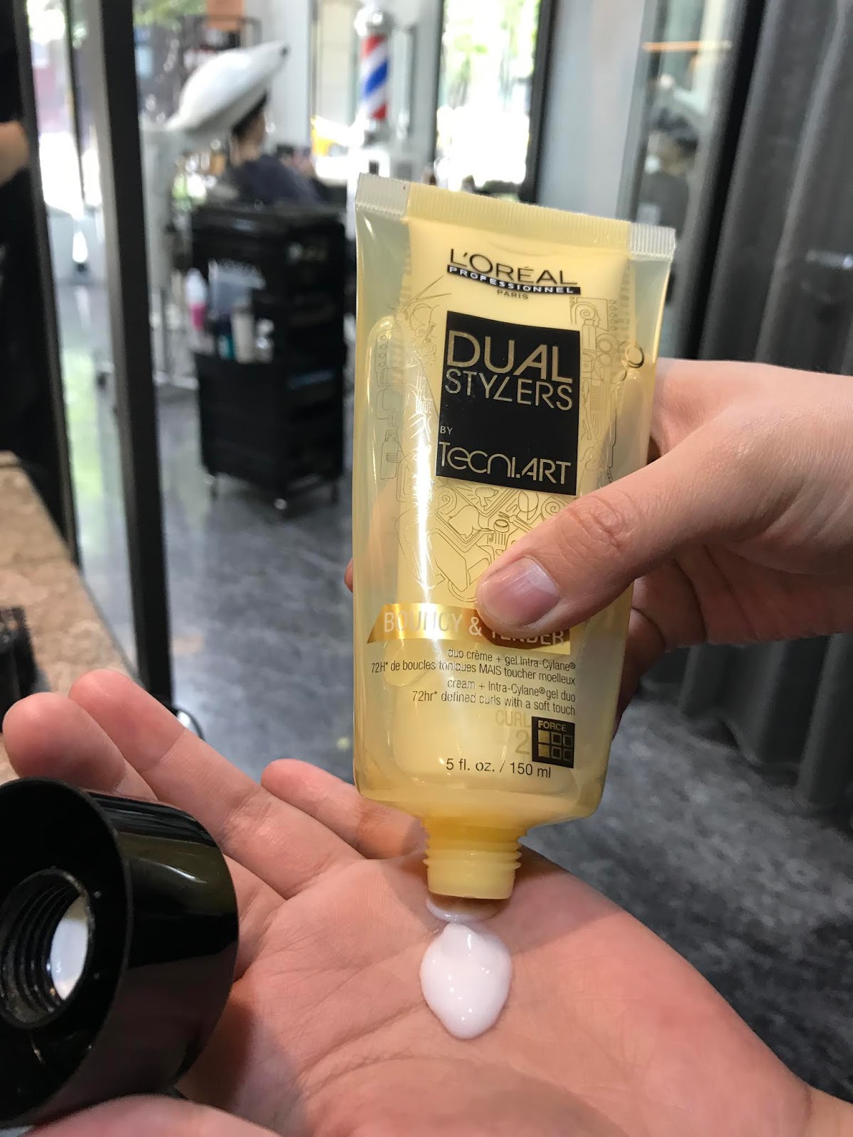 吹整前Hannah特別幫我先抹上巴黎萊雅的造型前保養乳,讓頭髮吹整後更滑順好看。
