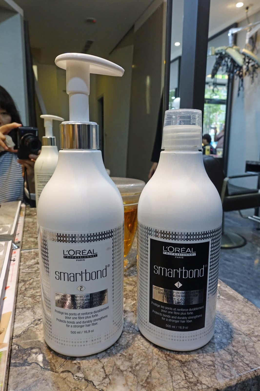 洗完頭後再用巴黎萊雅的護髮產品來做結構式護髮,總共有兩劑,萊雅結構護1號是用噴的,萊雅結構護2號是膏狀梳在頭髮上再用蒸氣蒸。