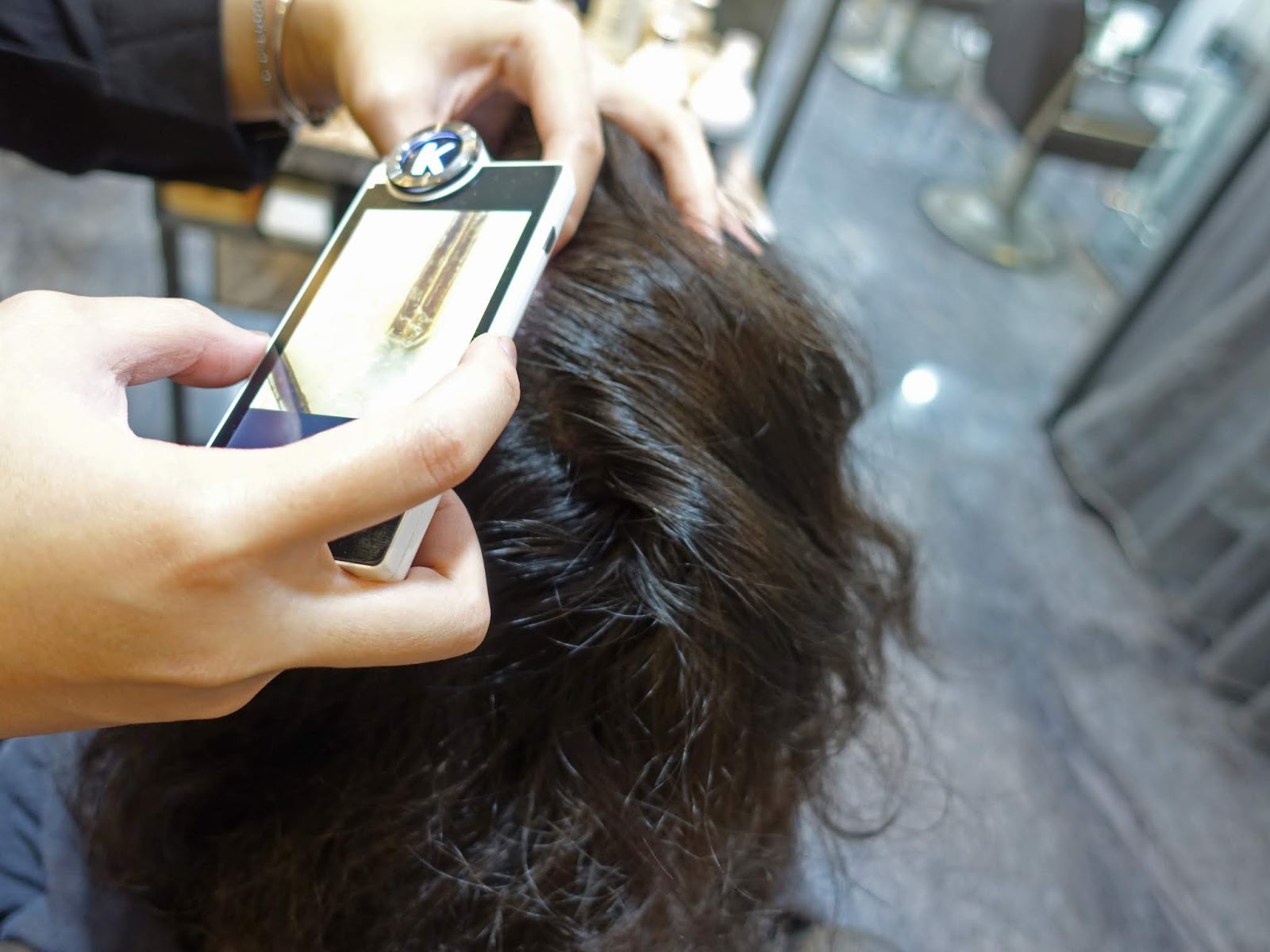 護髮前,設計師Hannah先幫我看了一下髮質並做頭皮檢測,看看我比較適合用哪一款洗髮精洗頭。