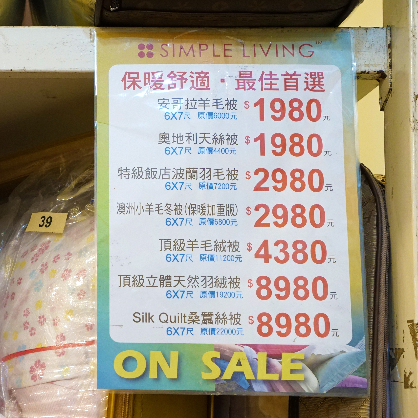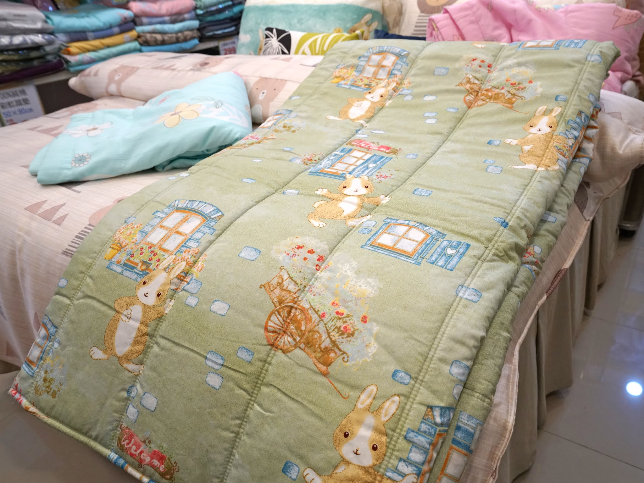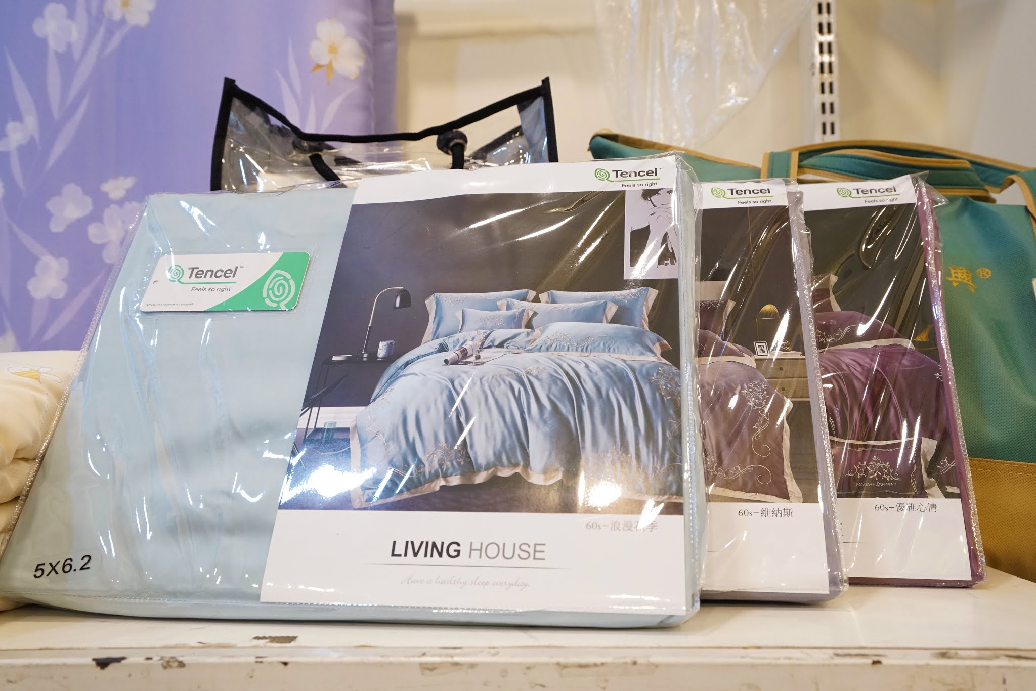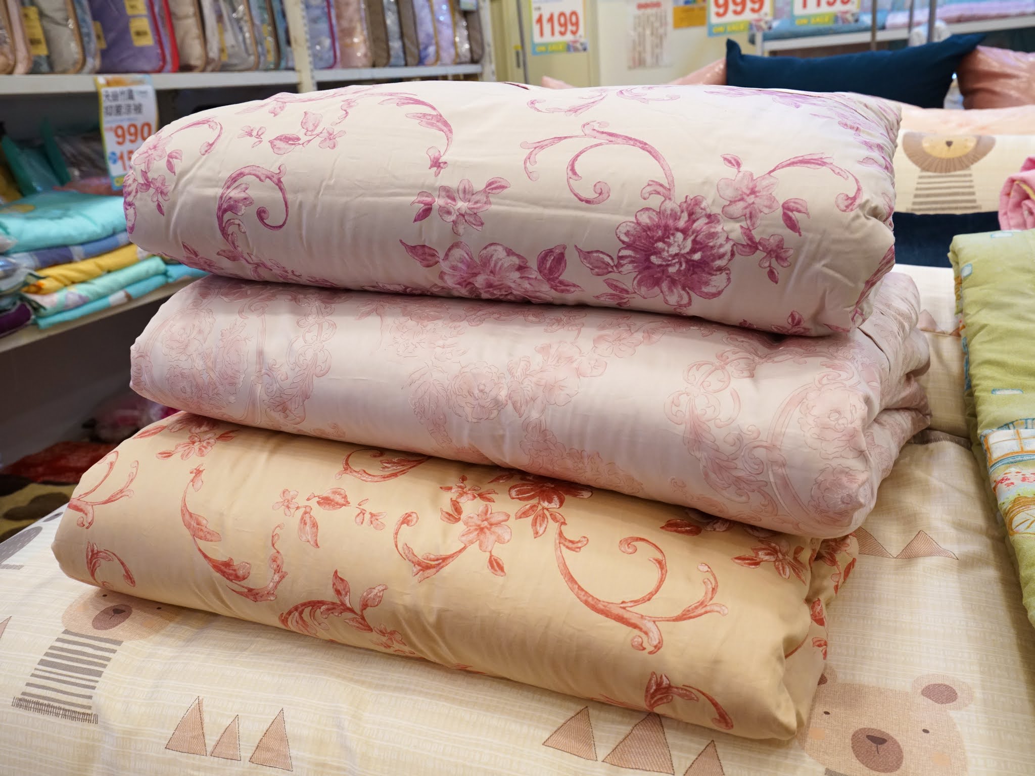 這次來逛看到這款雅致的淡紫色花紋,比百貨公司專櫃的寢飾還漂亮,讓我愛不釋手!推薦大家一定要親自來摸摸看、選選看!