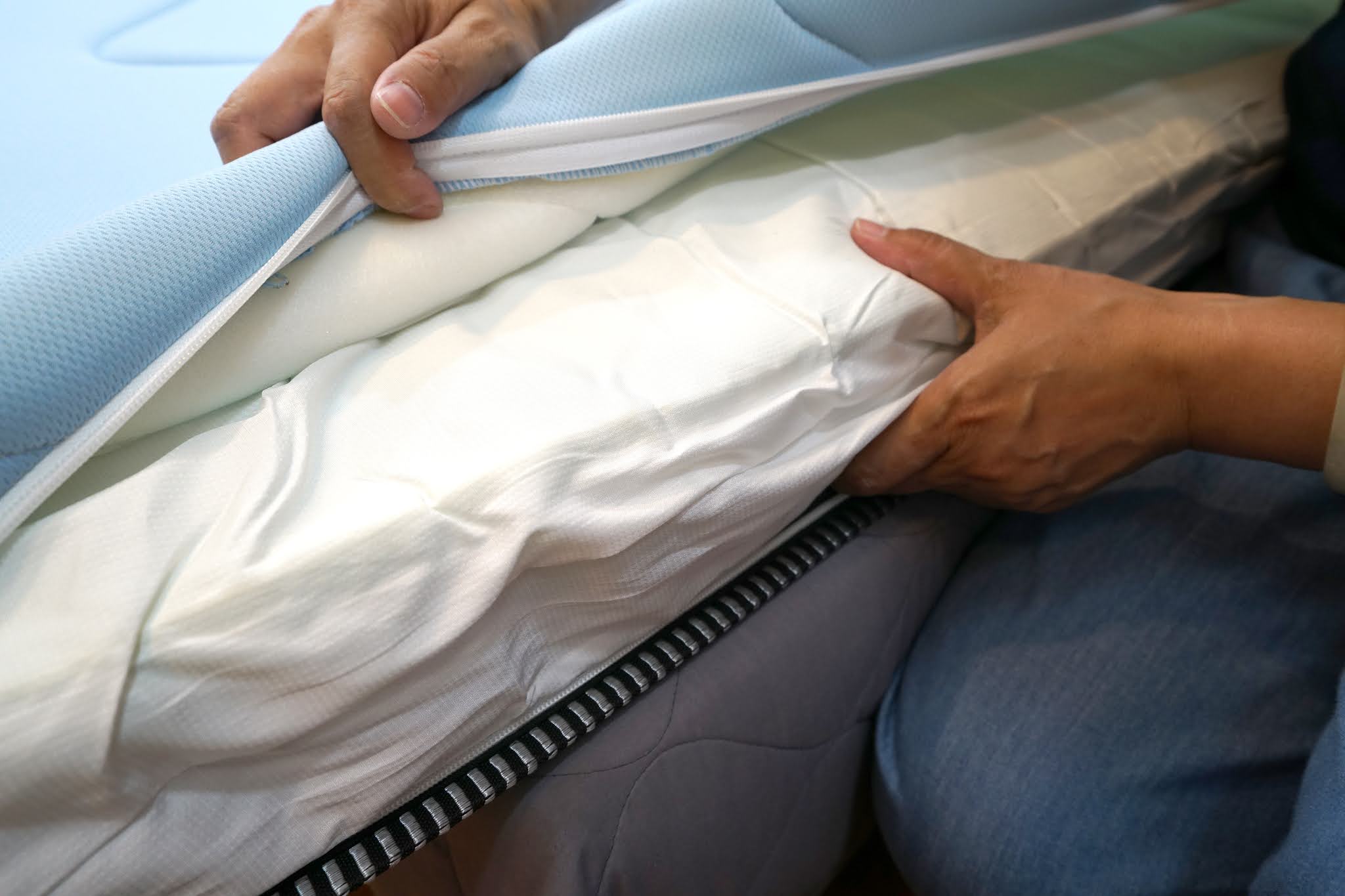一般床墊無法清潔水洗,但這個床墊從側邊拉開拉鍊就可以將表布拆下來水洗!很方便清洗!