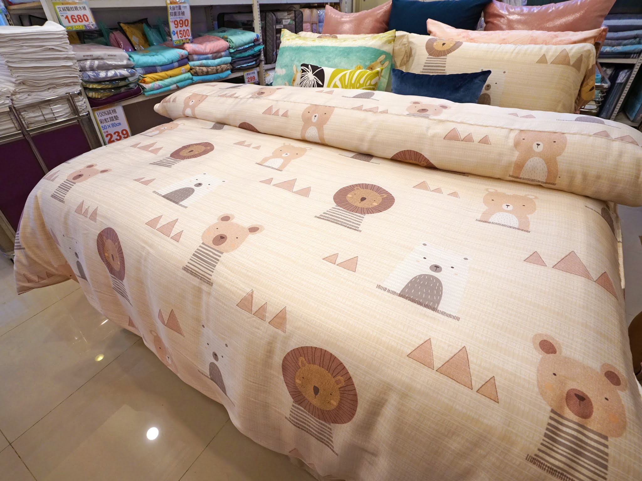 現場的床組展示的小豬與獅子花色也非常可愛唷!