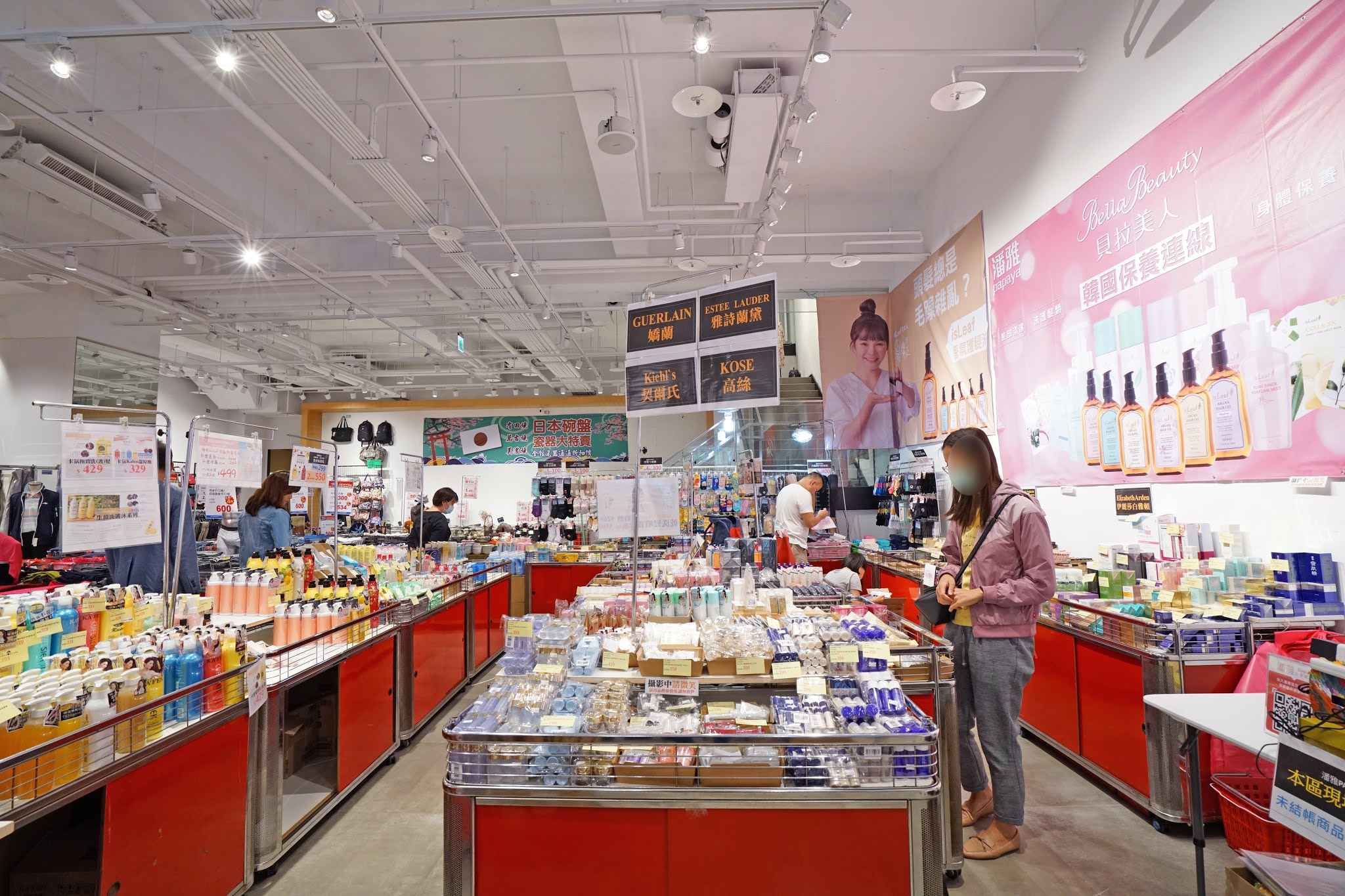 隔壁就是日韓美妝特賣,除了日韓美妝保養品,還有百貨化妝品牌嬌蘭、雅詩蘭黛、高絲的小罐妝保養品,這裡通通都買得到!快趁機來挖寶!