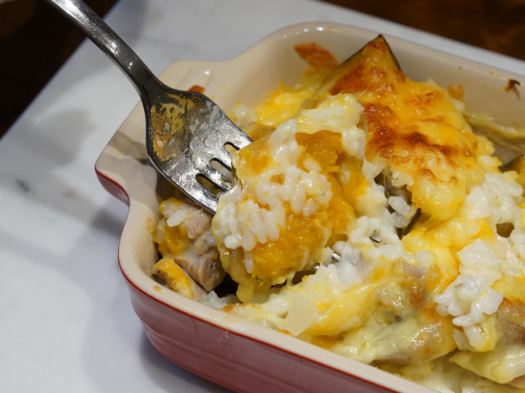 用剩下的隔夜白飯,來做這道南瓜雞肉焗飯,做法和材料都簡單,也可以把飯換成筆管麵,做成南瓜雞肉焗麵唷,帶著甜味的南瓜小朋友也很愛吃,推薦大家試試看!