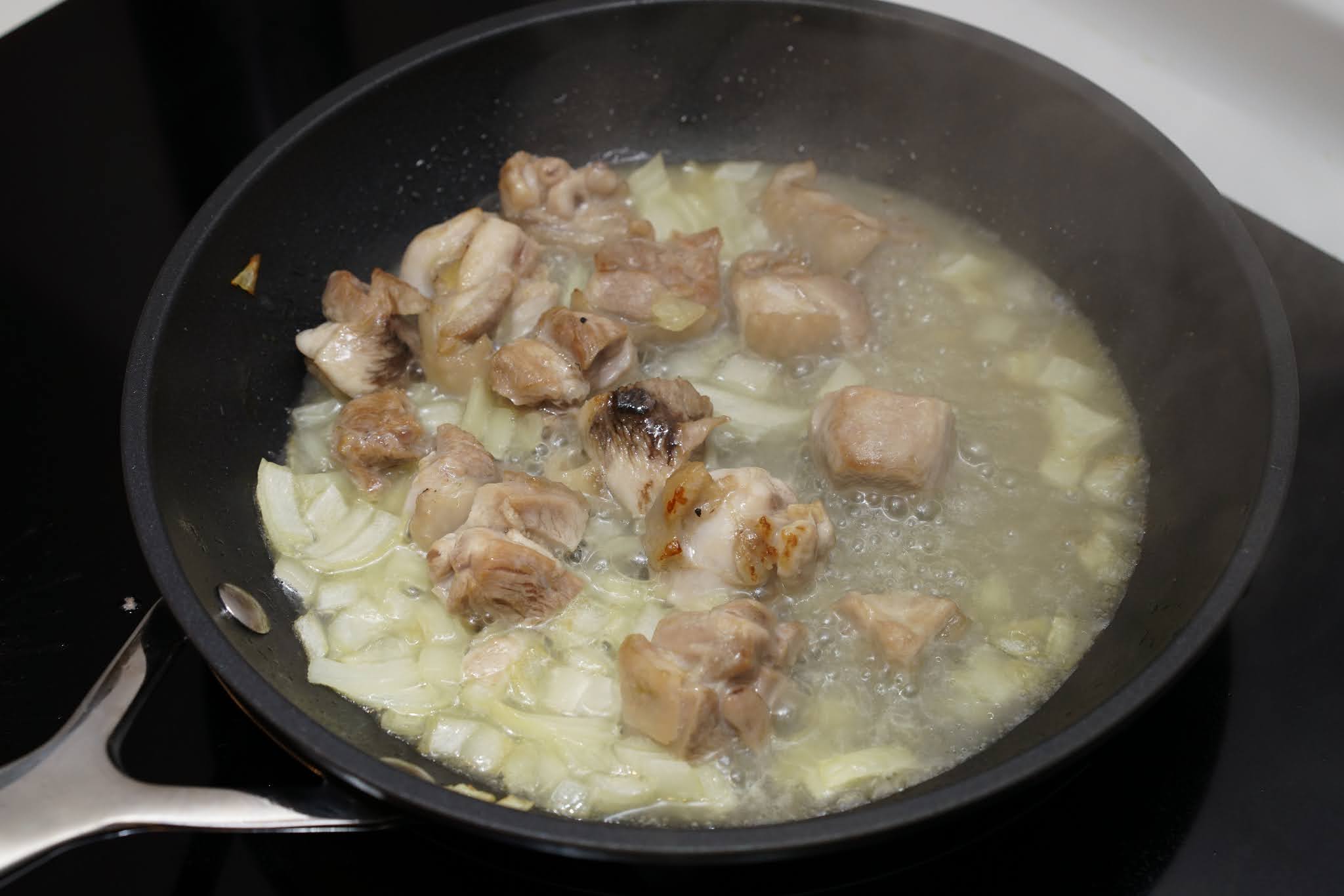 6.加入白飯、鹽、胡椒粉,拌均勻。
