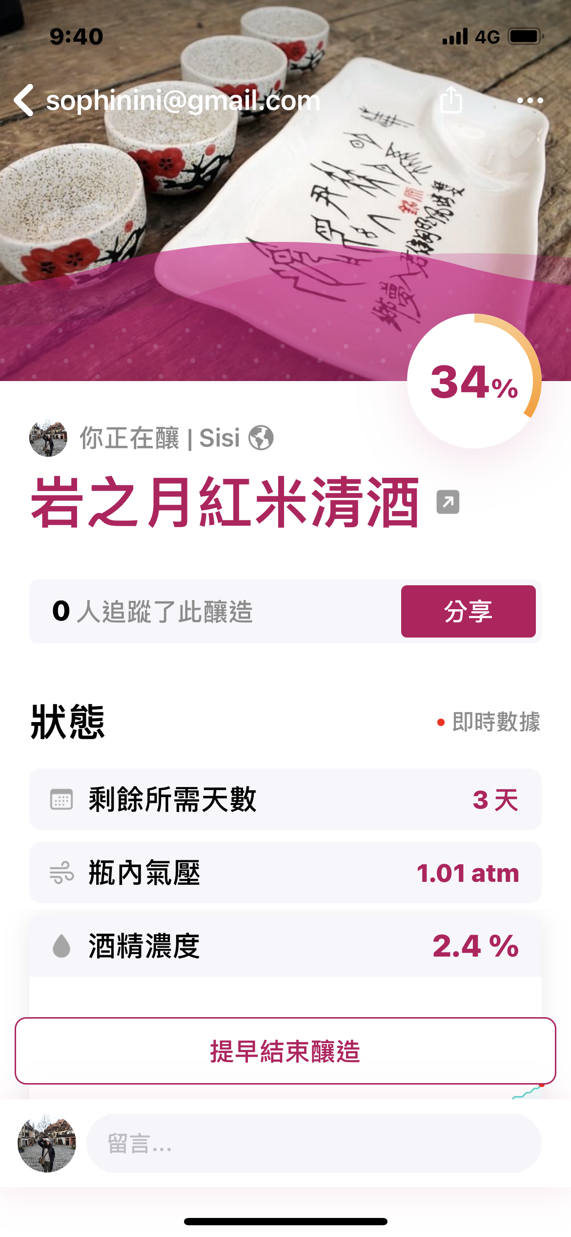 釀酒真的太好玩!太有成就感了!現在每次一釀完酒,分享APP上的釀酒畫面給朋友,大家就開始約時間來我家裡吃飯囉~現在除了玩烹飪烘焙、我也深深迷上釀酒了~