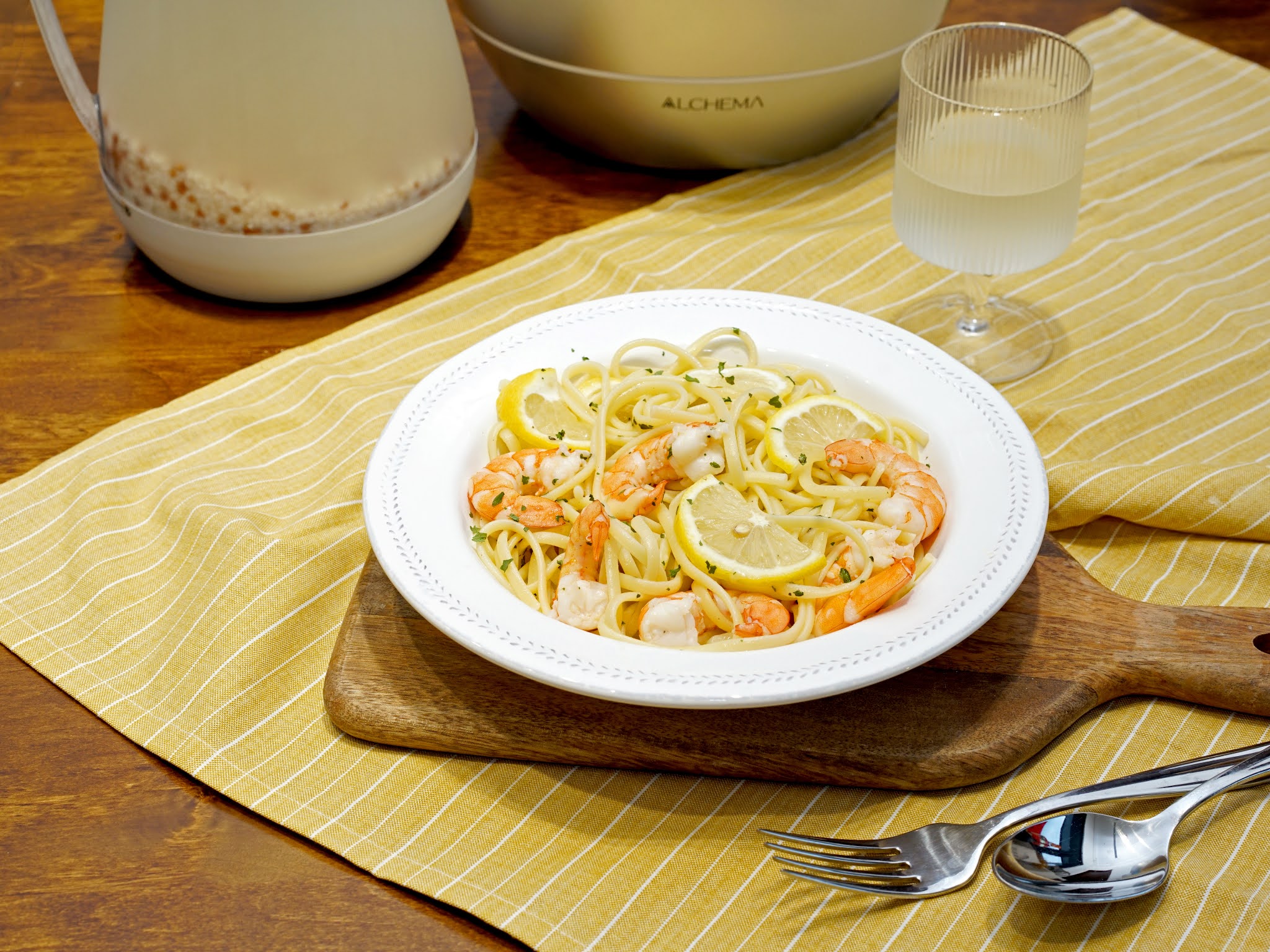 這次我想做的料理是口感清爽的檸檬蝦仁義大利麵,吃起來酸香解膩,夏天吃格外開胃~所以特別選了這款岩之月紅米清酒來搭配!味道果然非常合拍!推薦大家跟著我一起試做看看~