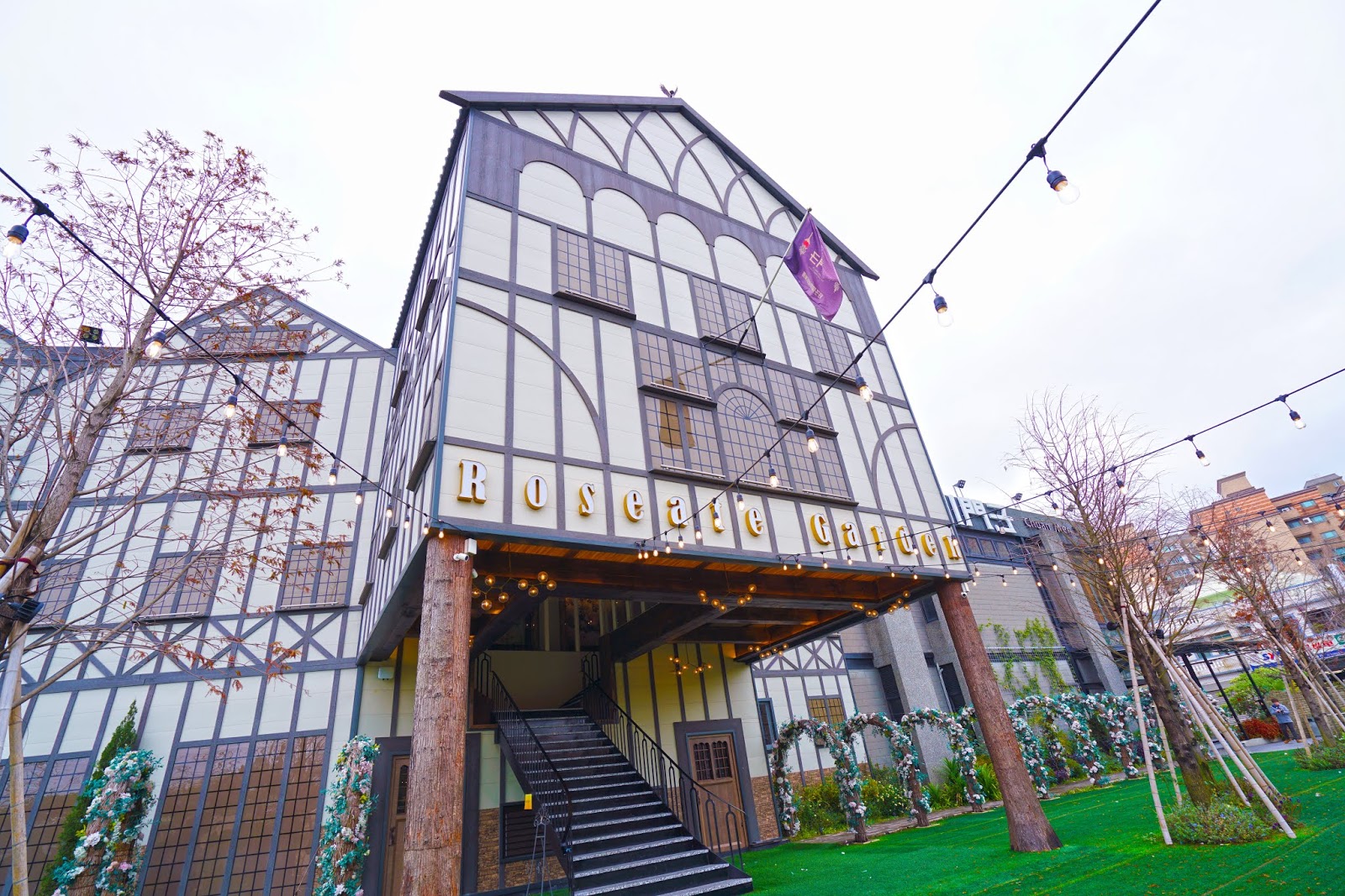 走上二樓,步入餐廳前,還有一個讓賓客與新人拍照的背板區,佈置得非常漂亮,川門子的每個角落都是IG美照的完美場景!可以想像在這裡辦婚禮會有多熱鬧!大家一定會得玩得超開心!