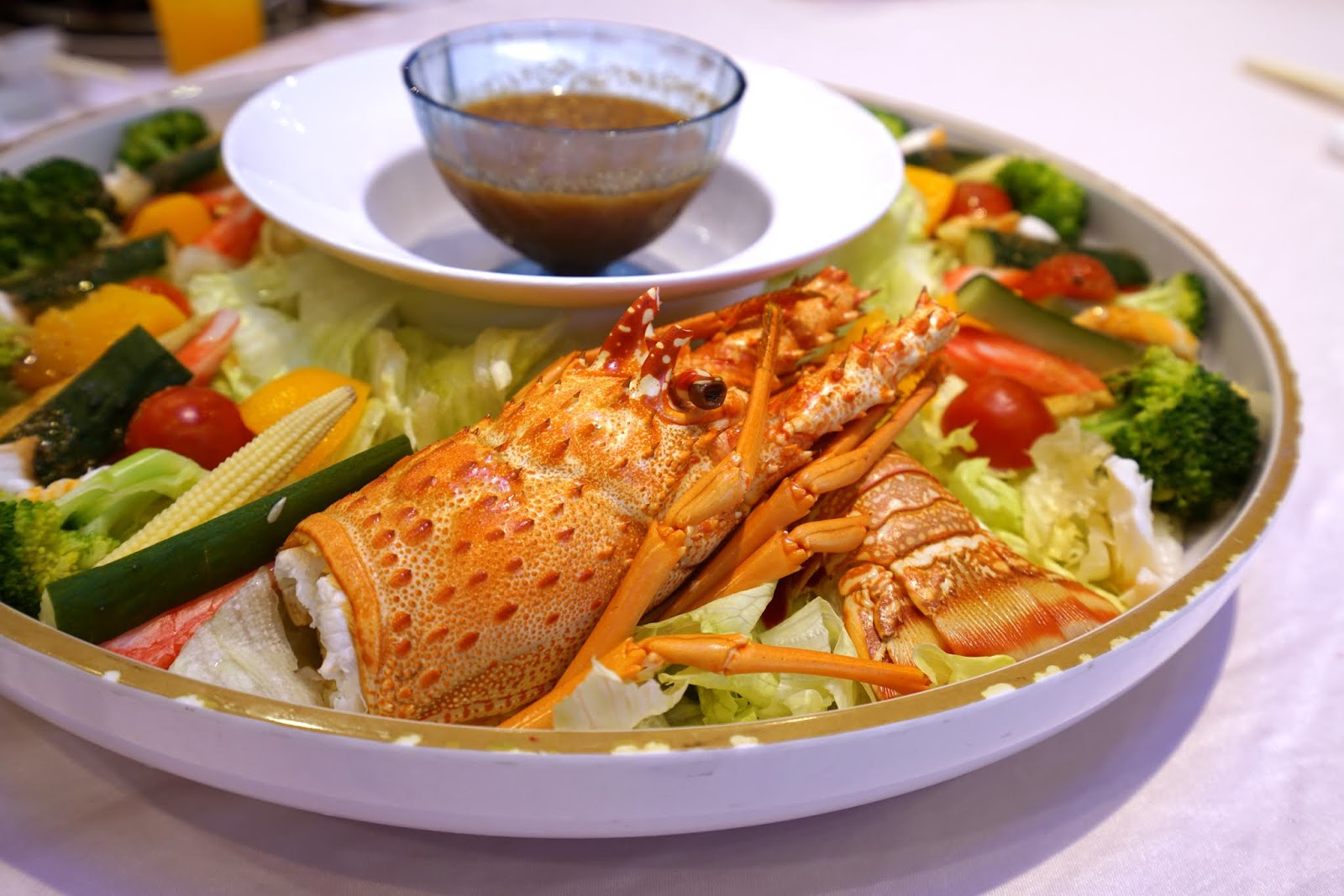 帶著乾冰上桌的「伊勢龍蝦野沙拉」氣勢非凡!進口的龍蝦肉質鮮嫩,搭配日式和風醬汁與蔬菜吃起來鮮脆爽口!