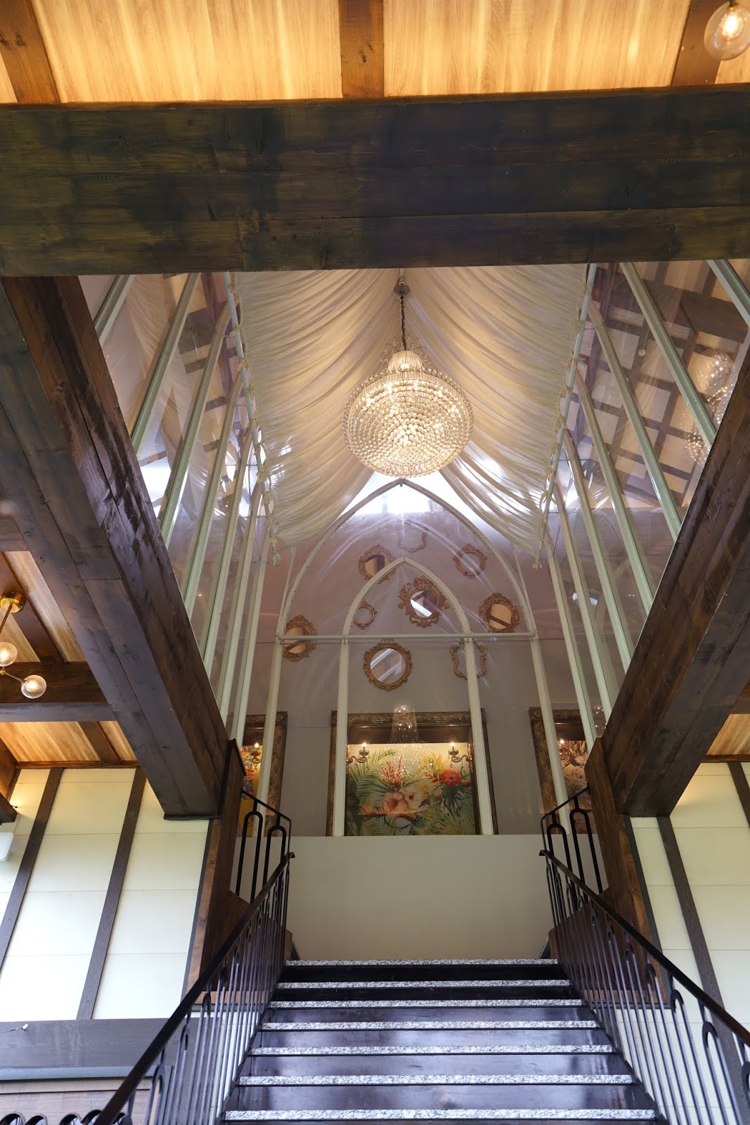 從戶外順著歐式建築的階梯走上餐廳,這個盛大華麗的水晶燈場景也是所有攝影師必搶拍的背景之一。