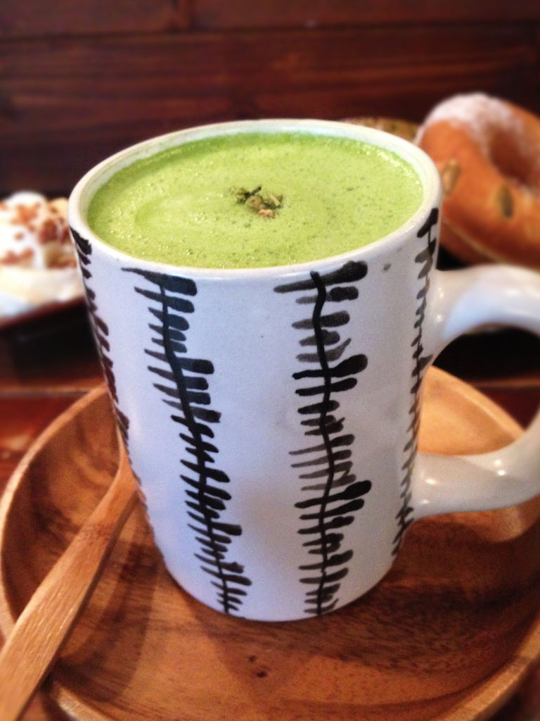 上面灑上些許茶葉與玄米,更增添了抹茶的風味呢~