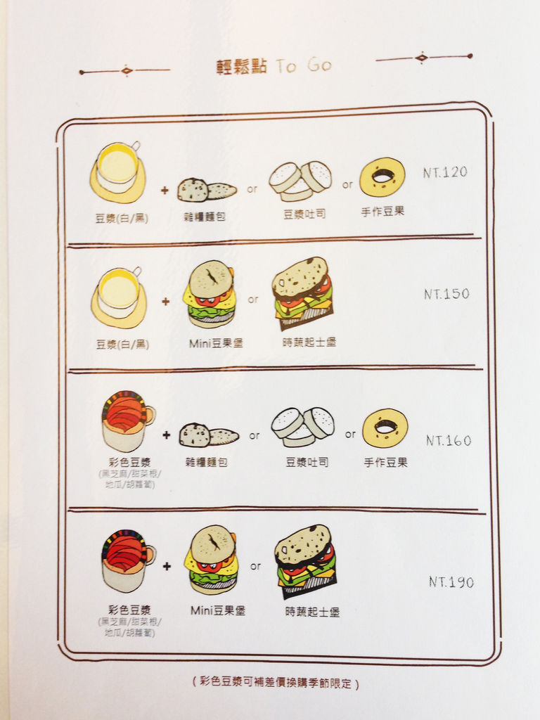 ( 輕鬆點套餐,附彩色豆漿,$ 190 )
