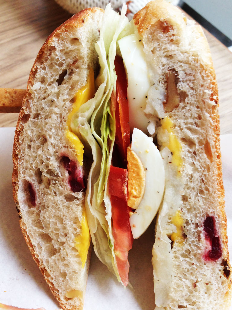 內容物包涵:起司片、生菜、番茄片、水煮蛋 和 馬鈴薯泥