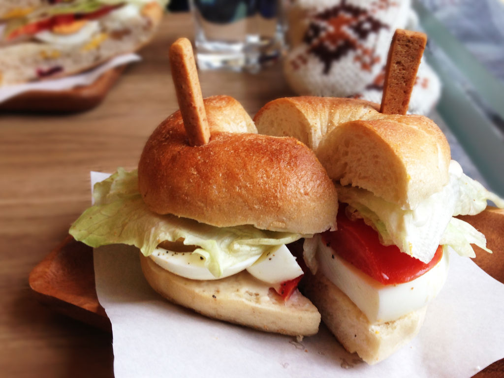 因為通常店家在做這類漢堡三明治時,都是使用牙籤來固定