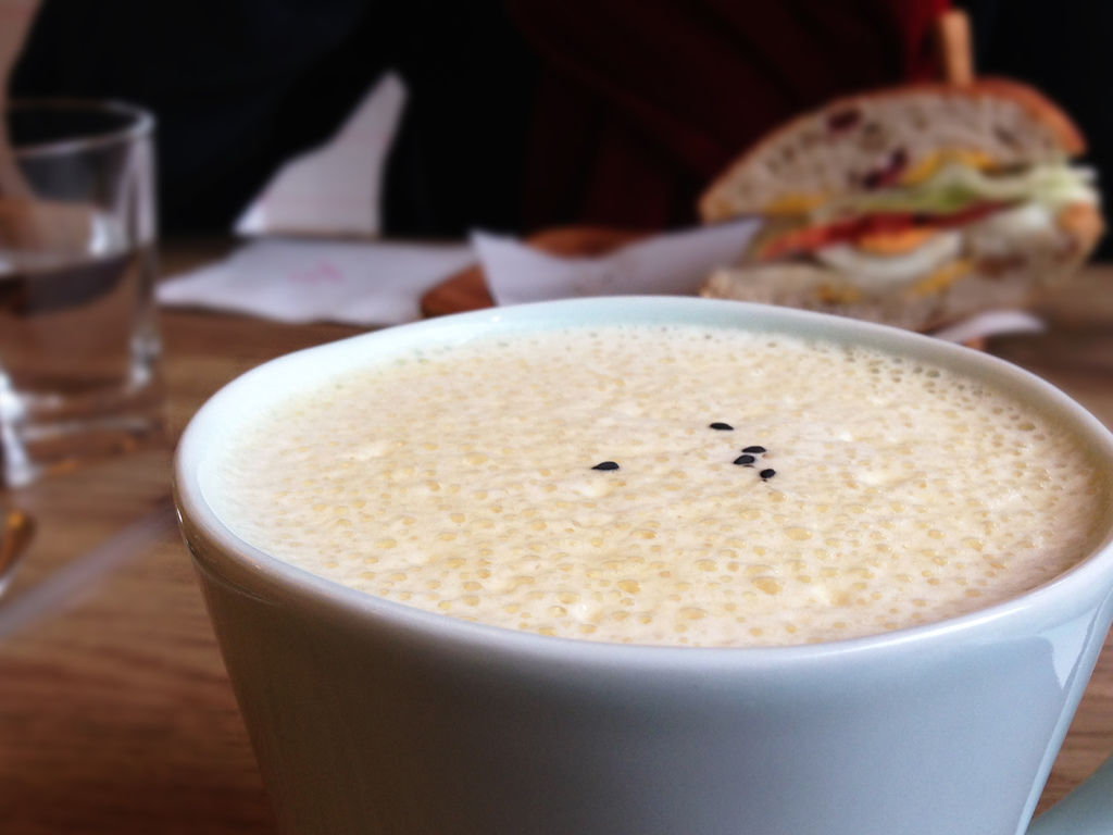 豆漿裡加入地瓜,營造了更微溫和舒緩的的口感