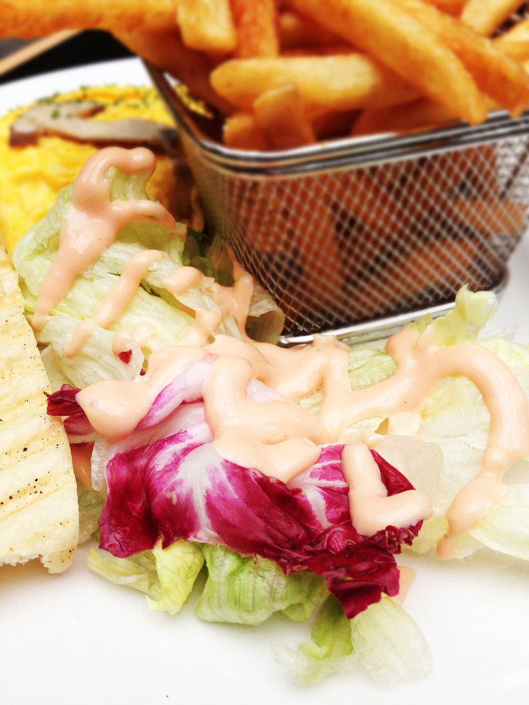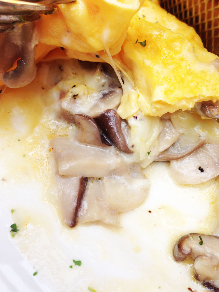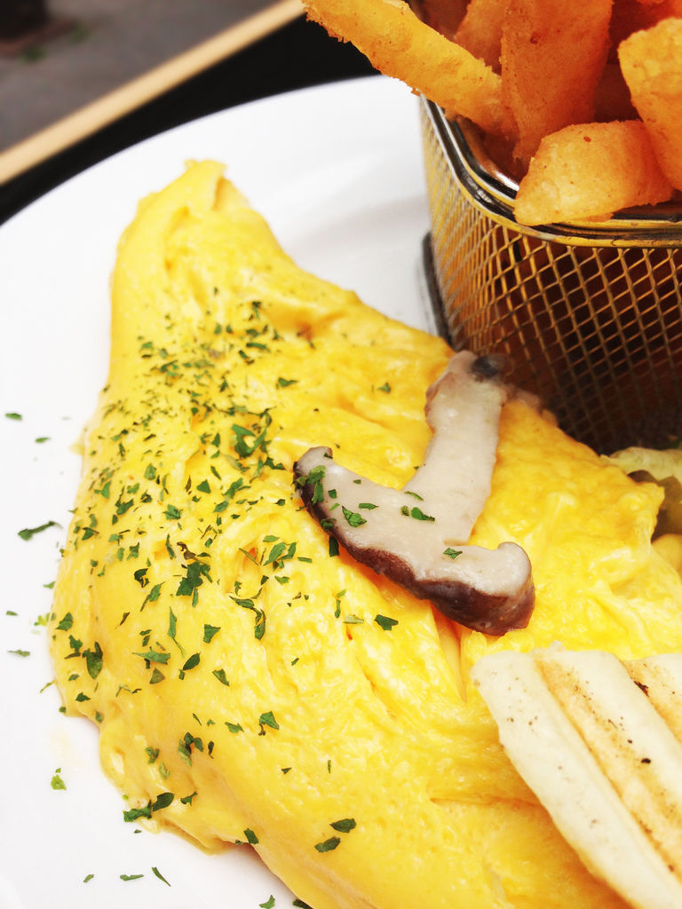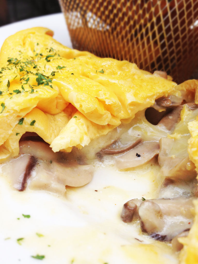 滑嫩香醇的歐姆蛋搭配野菇一起品嘗,還不錯吃耶!