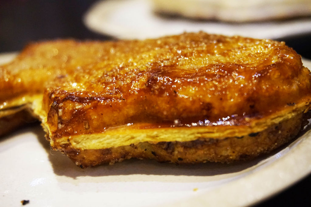 略帶酥感的餅皮與糖漿一起烤至香脆,散發著似有若無的香味,誘惑著等了一個小時飢餓無比的我