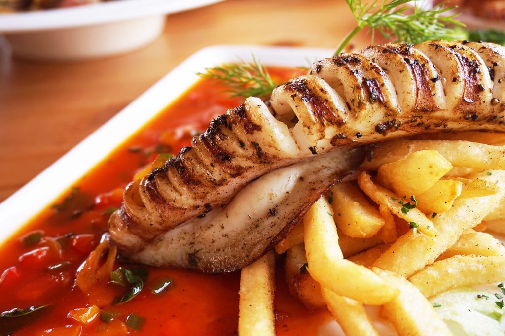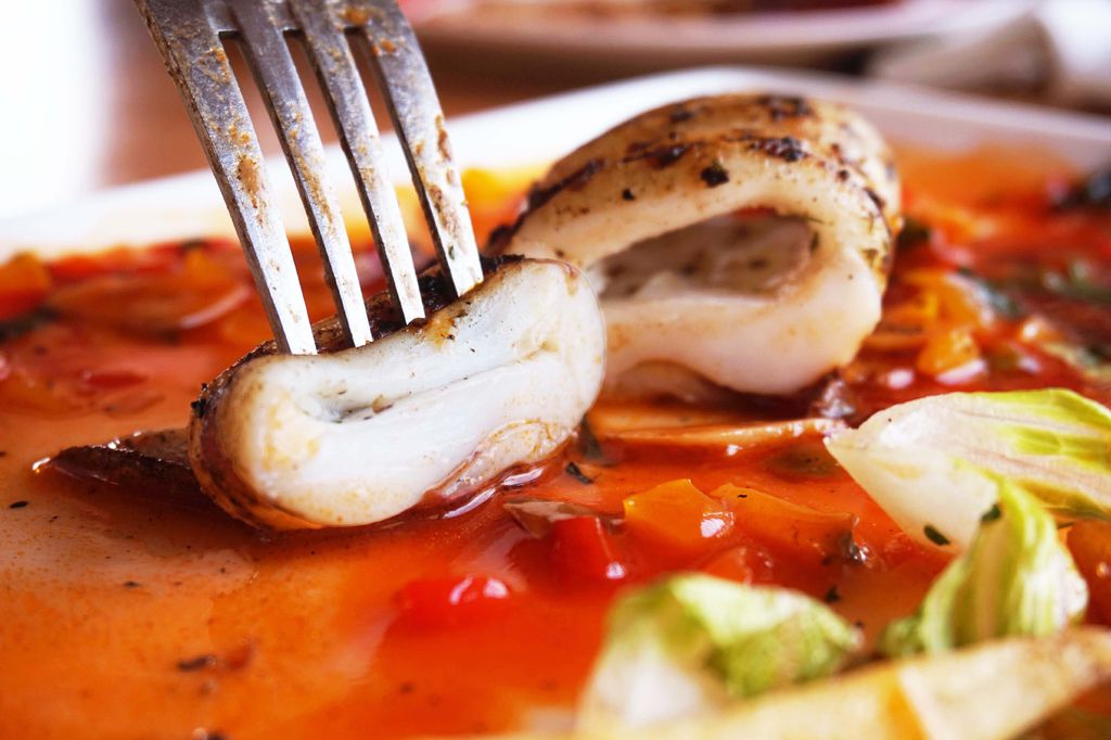 店家先將整隻墨魚以橄欖油加入新鮮茴香按壓入味後,再以大火香煎與炭烤至表面微焦