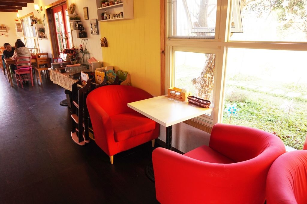 除了一般的木頭桌椅之外店內也有提供雙人的沙發座