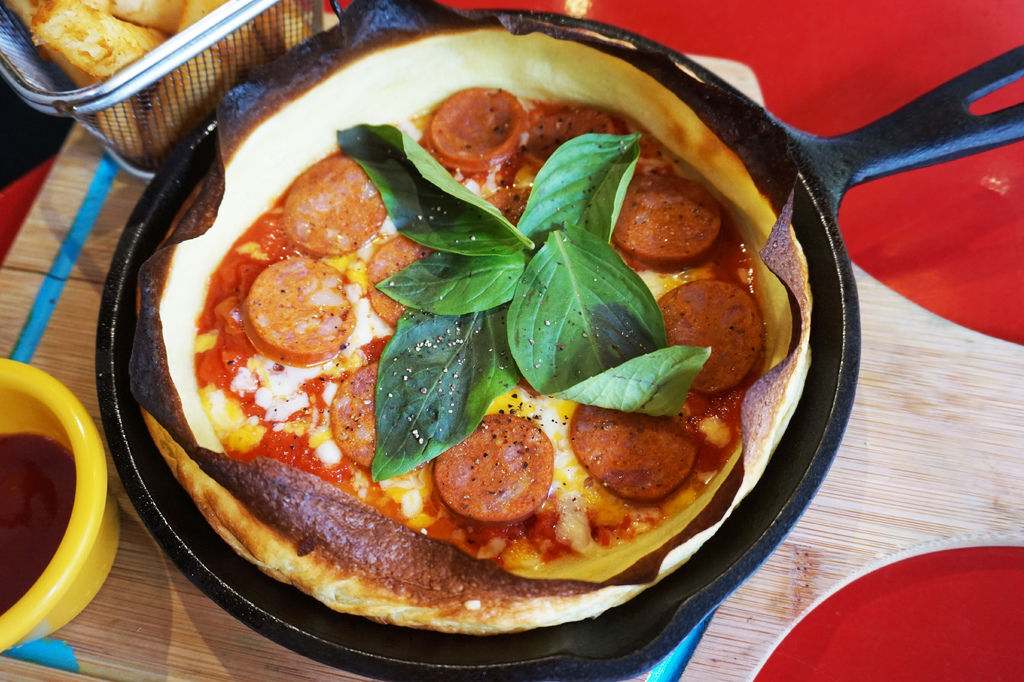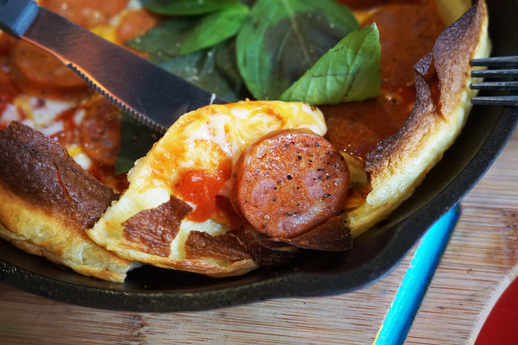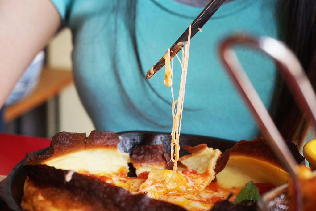 搭配入味的德式香腸、多到會牽絲的起司與香氣獨到羅勒一同入口,滋味很棒呢!
