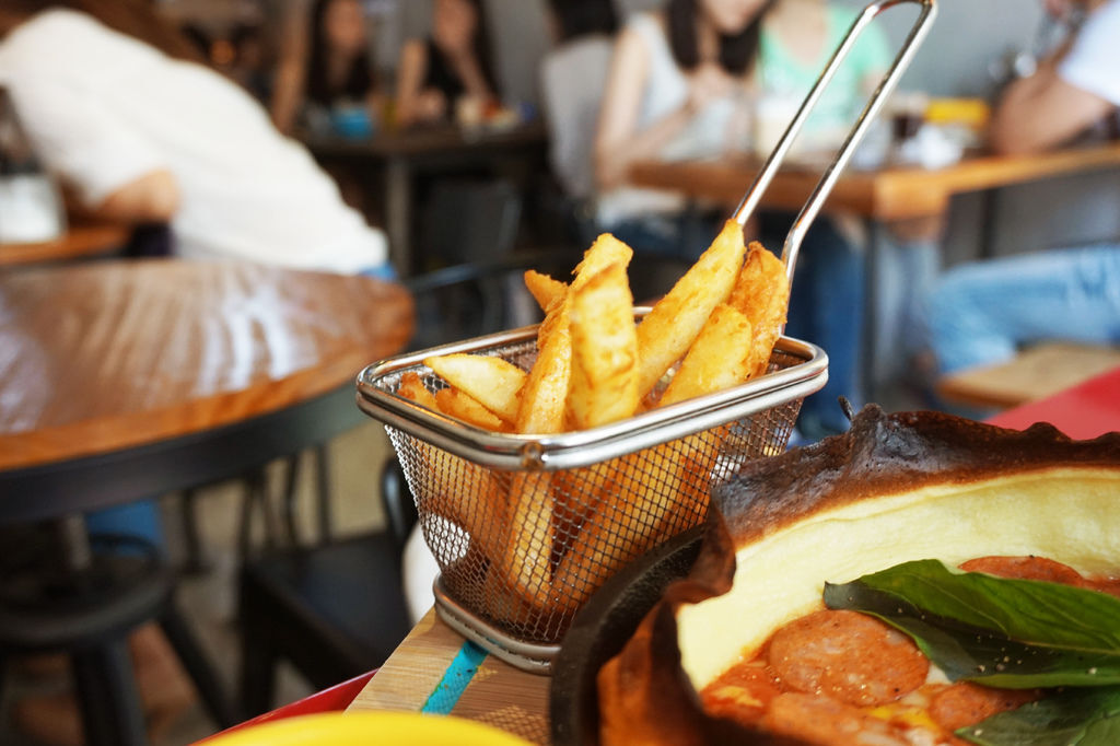 凡是點他們家鹹的焙鍋鬆餅都會附贈一小籃的薯條