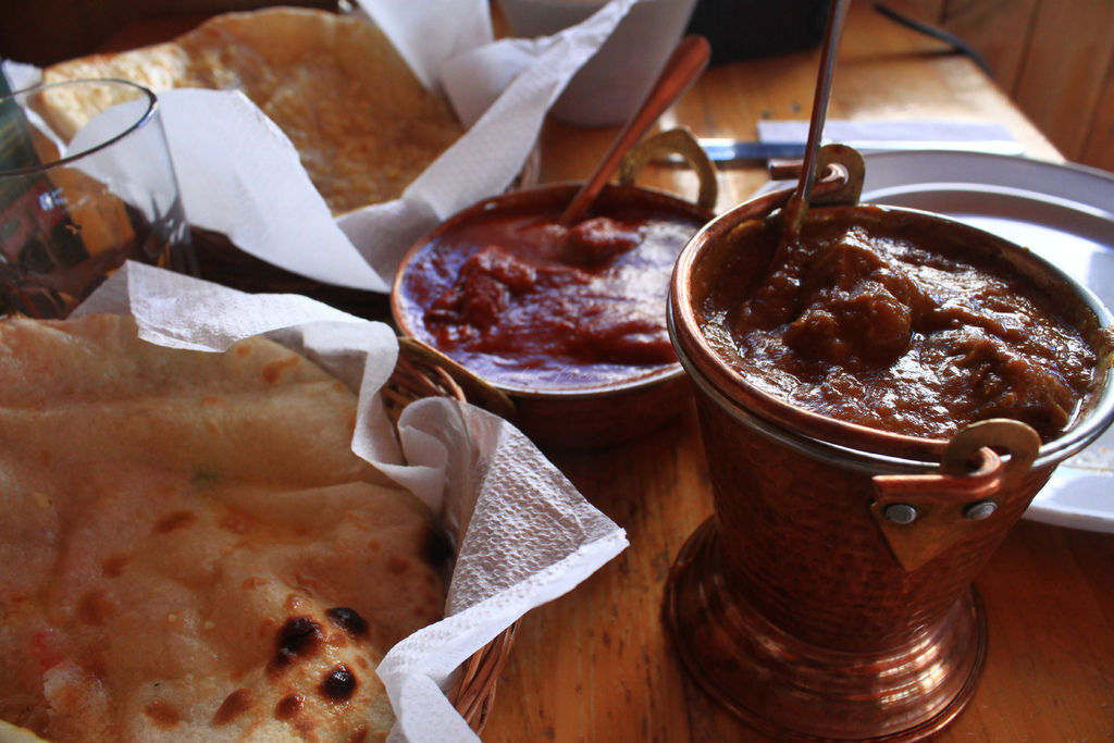 一邊溫習美好的回憶,一邊品嘗咖哩:Balti Lamb 和 Beef Vindaloo, Beef Vindaloo吸引我的地方是菜單上寫她有點葡式,腦子裏面一堆問號的情況下就點了它,我覺得兩種口味差不多,差別比較大的是肉的味道、跟辣度。這間店的辣度也不是開玩笑的,我水還喝了兩罐。