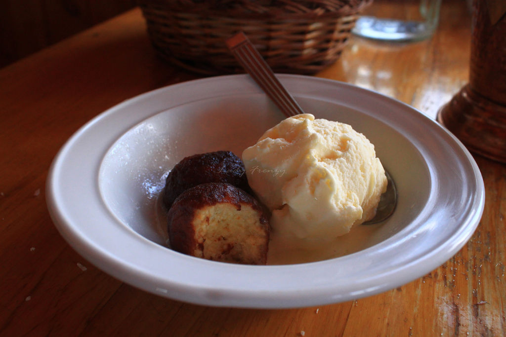 最後還想挑戰沒試過的甜點Gulab jaman,完全就是comfort food! 因為這道菜就是泡在糖漿裡面的香草冰淇淋跟蛋糕,超甜!哈!