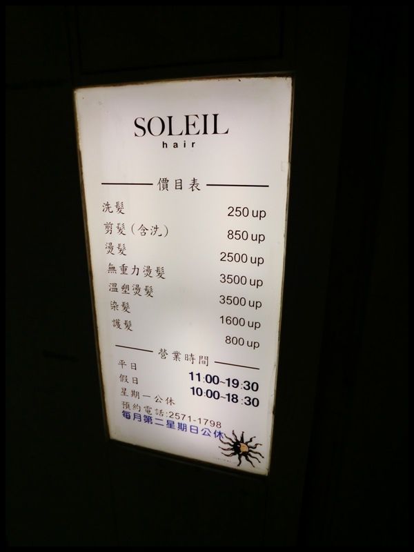 另外右側也有所有洗髮、剪髮、燙髮的價目表的提供,