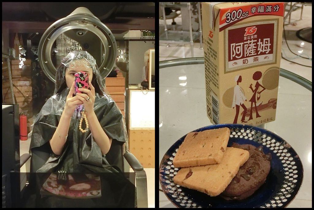 哈~第一次碰到髮廊直接拿出一瓶鋁箔包飲料,還是我以前超愛的阿薩姆,