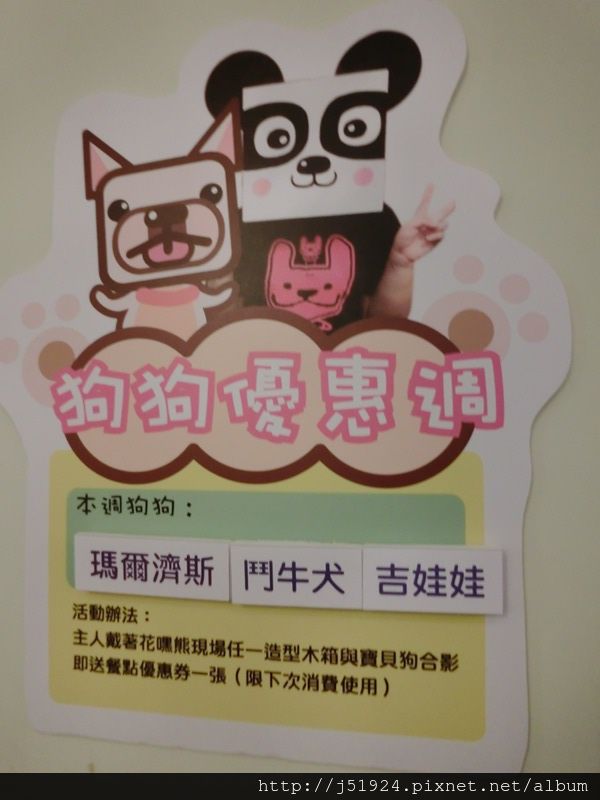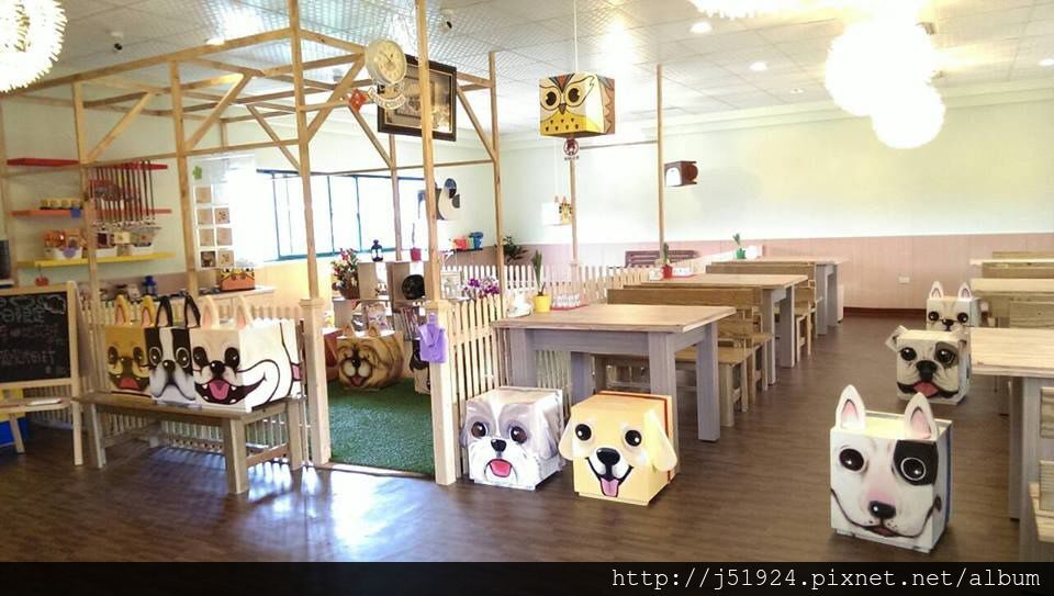 所以暫時不列入考慮,上網查了一下跟老喬最後決定帶QQ去這間超可愛的花嘿熊狗狗主題餐廳,