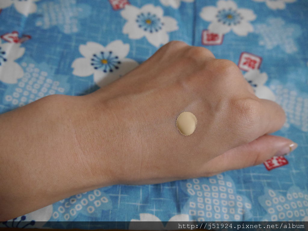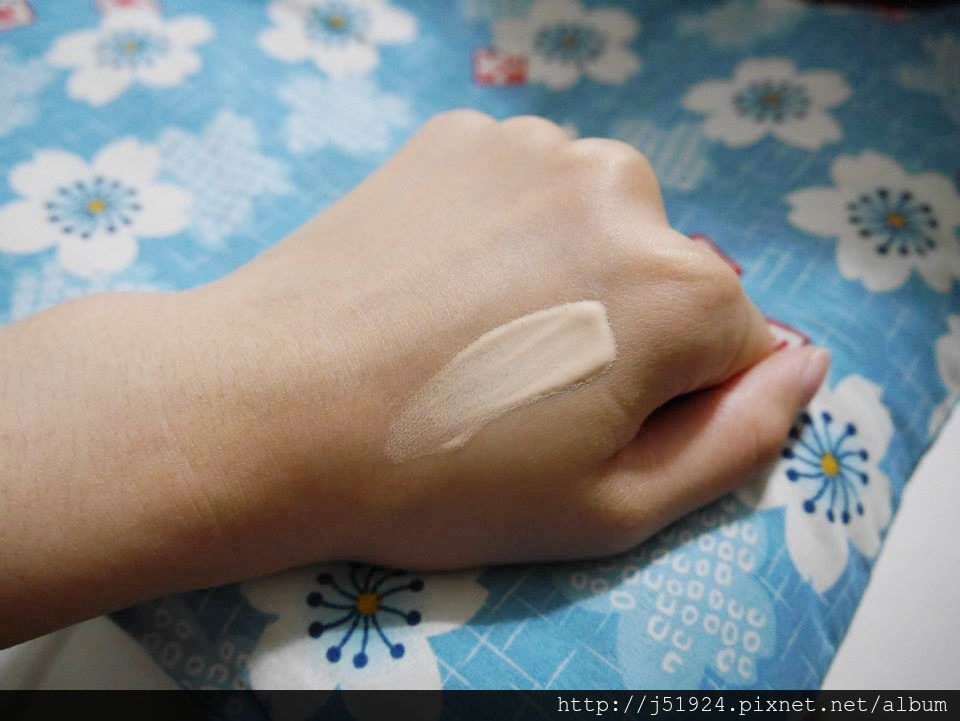先試在手上給大家看看,質地非常水潤就連有點乾燥的手背都非常輕鬆就推勻,