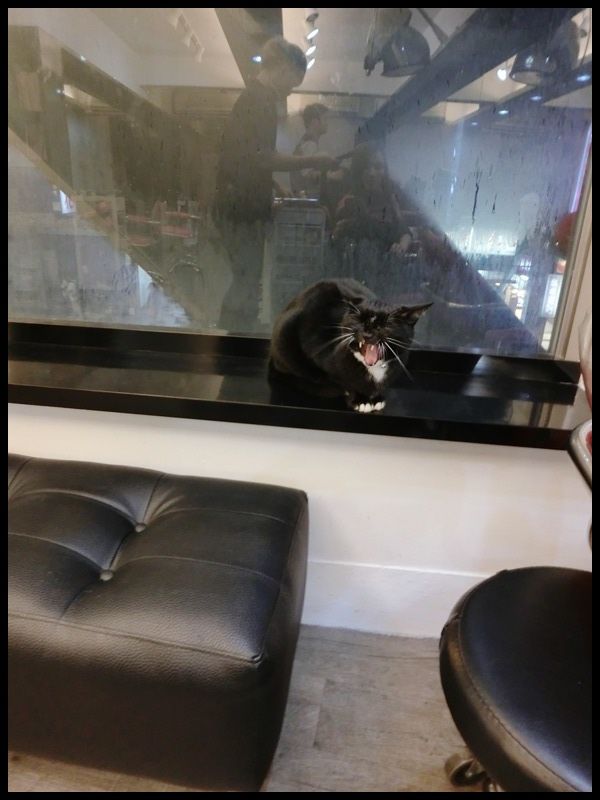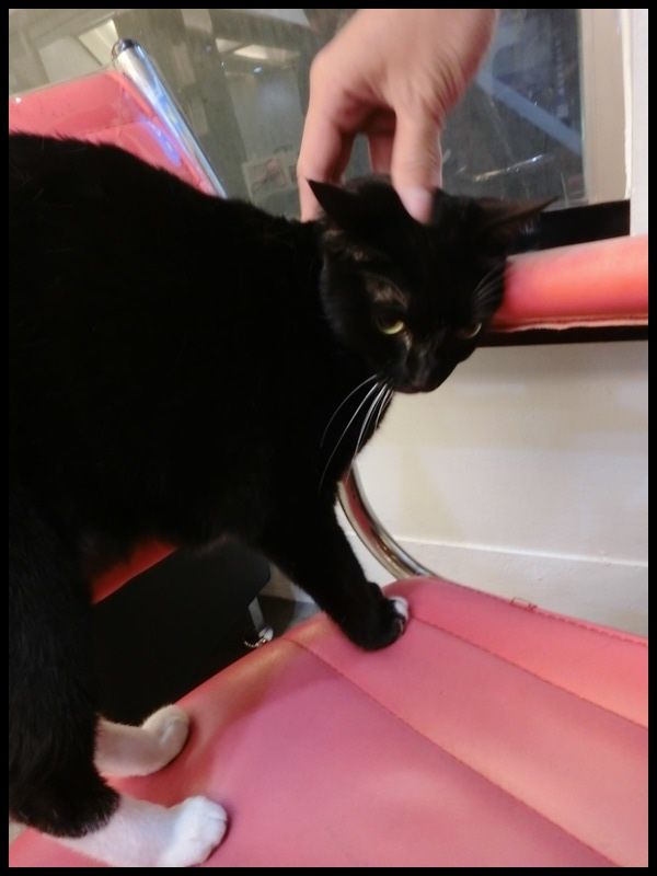 這時候A'mour家的小黑貓剛睡醒跑出來討食了,