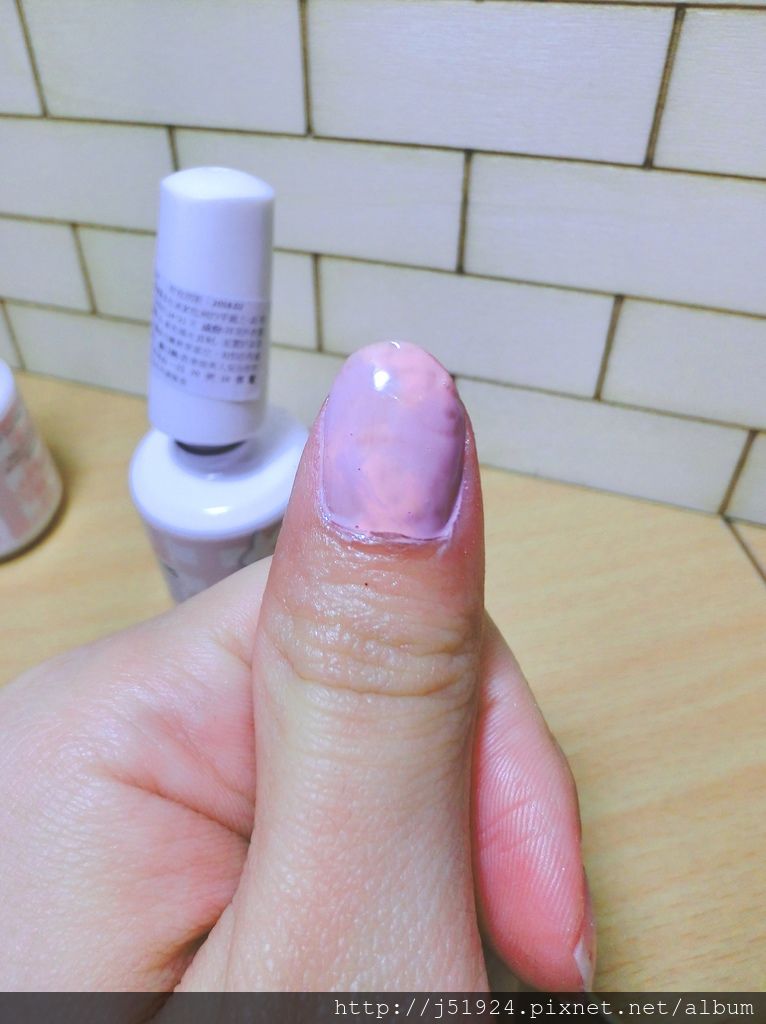 ☞點開之後在利用一小片的保鮮膜直接在指甲上按壓,均勻混和指甲油的顏色,
