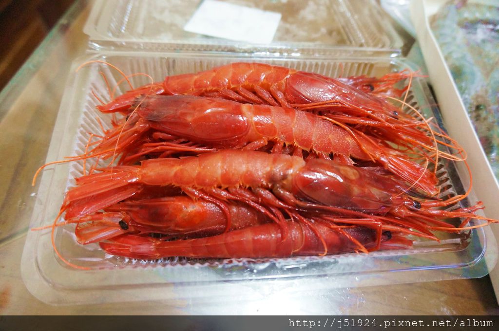 魷魚串(8串)、北海道生食干貝(8顆)、 海草蝦(10隻) 、宜蘭生食級胭脂蝦(8-10隻)