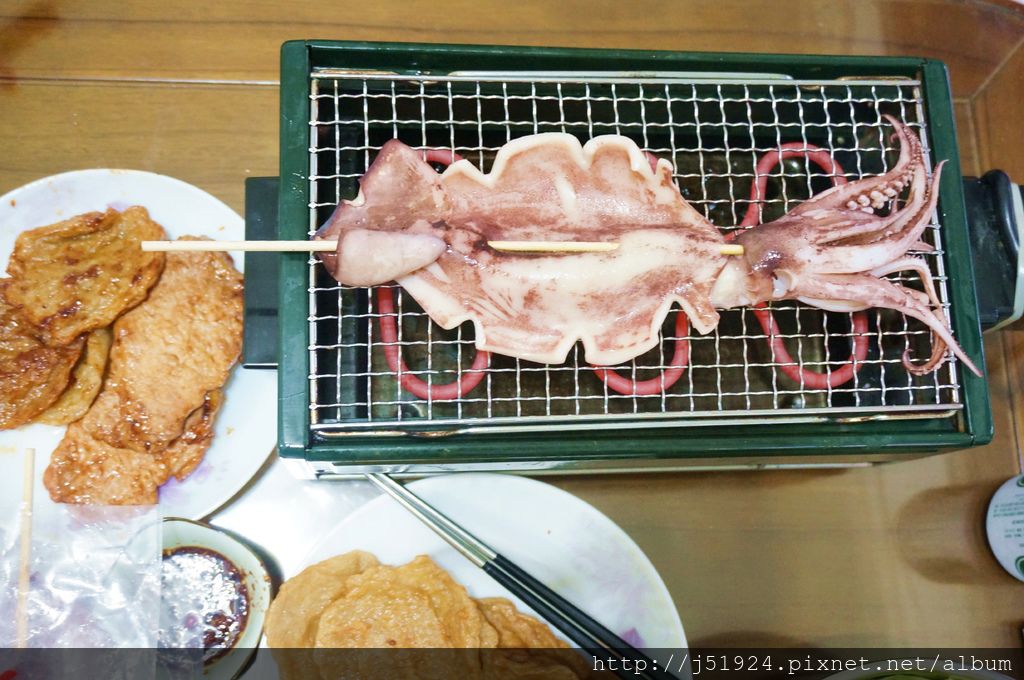 主桌上的爐我們烤比較需要顧著的魷魚、甜不辣和肉,