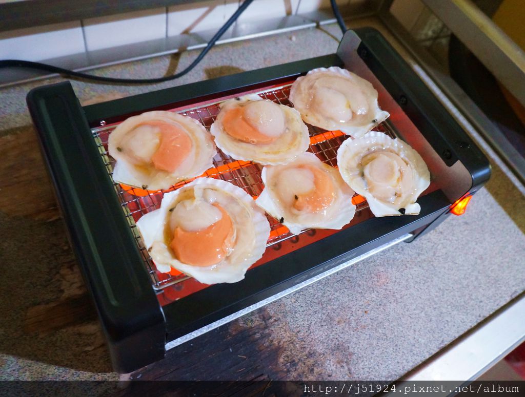 另一頭的電烤爐就同時進行放上扇貝~等大概5-10分鐘再來看一下狀況,