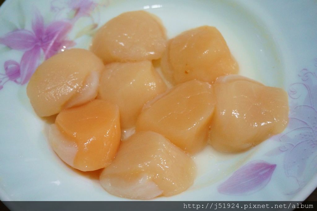 先給大家看看還沒烤好的干貝帶有點琥珀金黃色真的很美耶~~