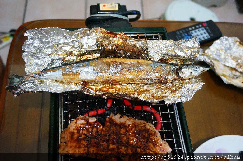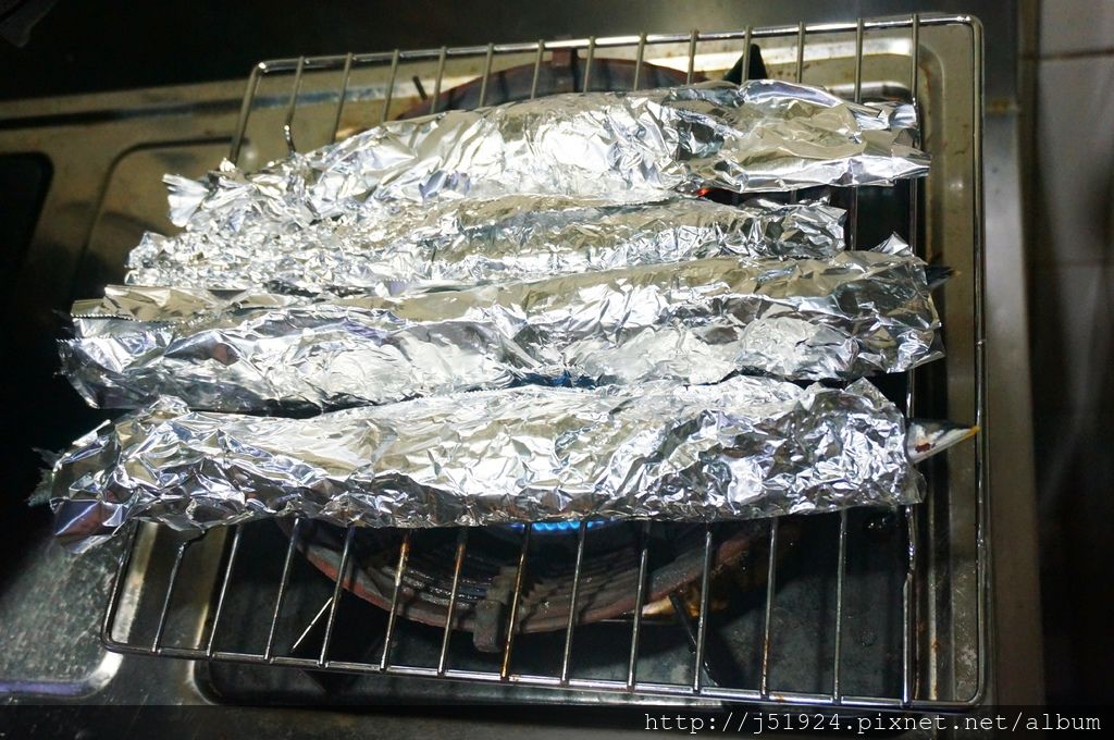 因為我們這次在烤的時候發現香魚肉比較容易黏在鋁箔紙上,秋刀魚因為本身油脂豐富比較還好,