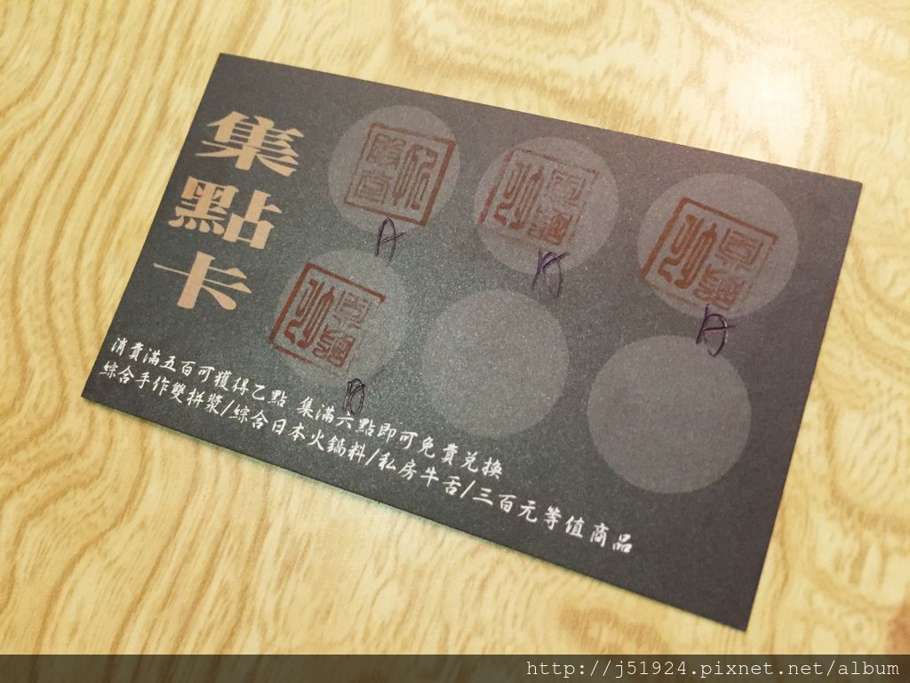 累積六點下次消費就可以免費兌換綜合手作雙拼漿(就是我們吃的明蝦漿噢!)或是私房牛舌等等高級商品一份,