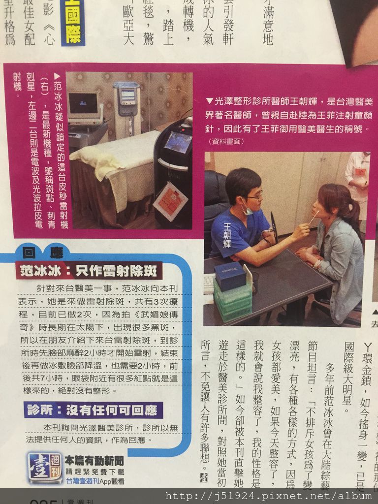 周刊上超大篇幅報導范爺到光澤診所~~